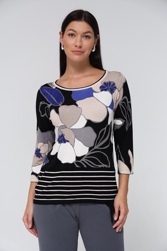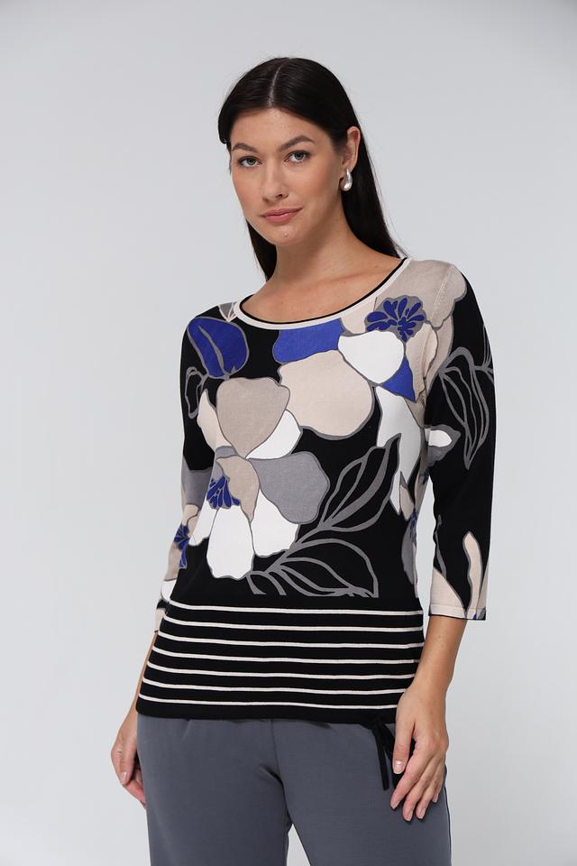 Женский пуловер Betty Barclay чёрного цвета с ярким цветочным принтом станет стильным дополнением к вашему гардеробу. Модель выполнена из мягкого и приятного к телу сочетания вискозы и полиамида, обеспечивая комфорт в носке. Состав: вискоза 80%, полиамид 20%