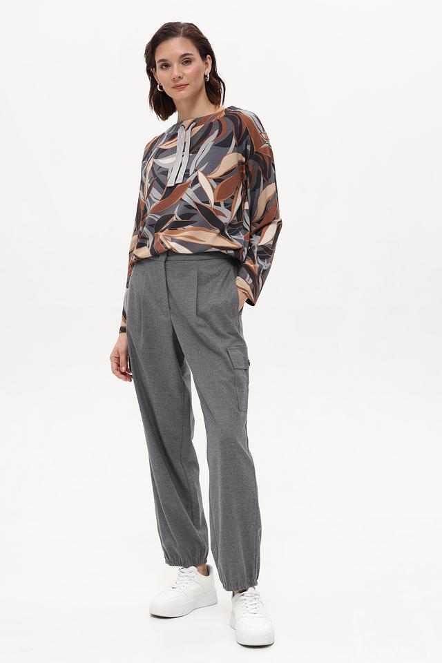 Женский пуловер Betty Barclay серого цвета с оригинальным принтом в виде листьев. Модель выполнена из мягкой вискозы с добавлением полиэстера и эластана, что обеспечивает комфорт и хорошую посадку по фигуре. Состав: вискоза 72%, полиэстер 24%, эластан 4%