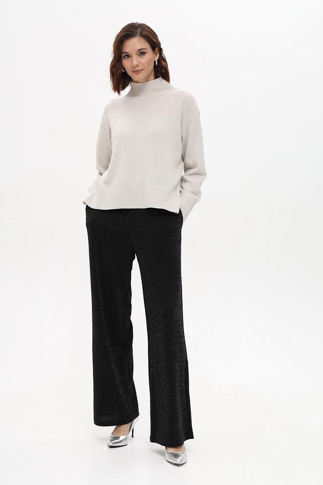 Модель имеет прямой крой, который подчеркивает фигуру, не сковывая движений. Высокая посадка визуально удлиняет ноги и делает силуэт более стройным. Брюки изготовлены из мягкой и приятной к телу ткани, в составе которой преобладает полиэстер, дополненный эластаном и полиамидом для обеспечения комфорта и хорошей посадки.