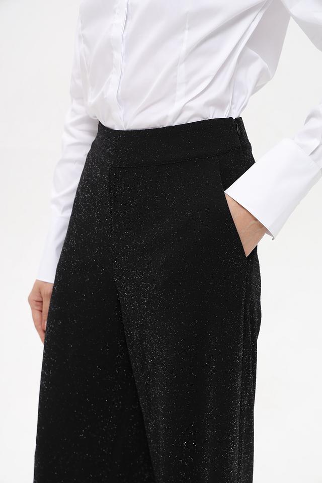Эти элегантные брюки от Betty Barclay станут прекрасным выбором для создания вечернего или праздничного образа. Брюки выполнены в классическом черном цвете с добавлением мерцающих нитей, создающих эффект легкого блеска.