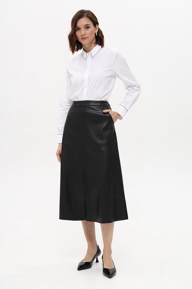 Юбка имеет классический чёрный цвет, который легко сочетается с различными элементами гардероба. Прямой крой и длина миди делают её универсальной для разных случаев – от деловых встреч до вечерних выходов.