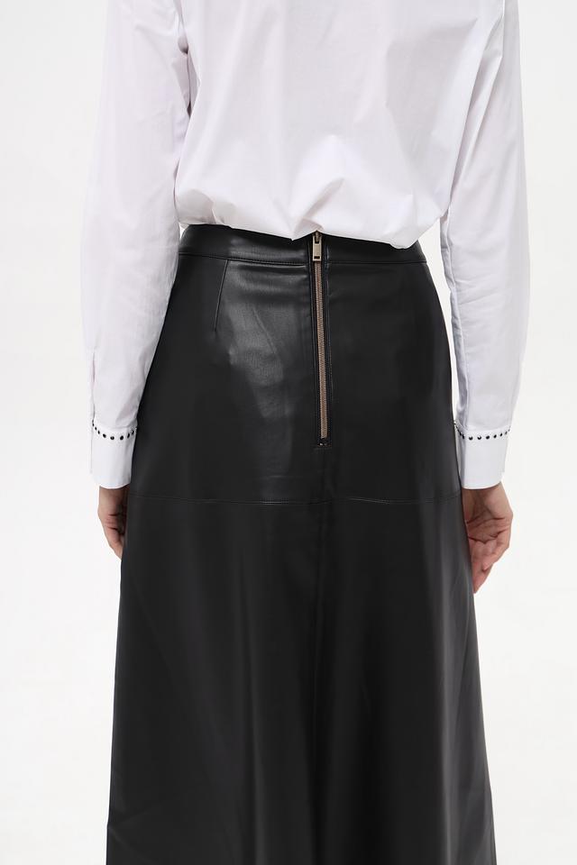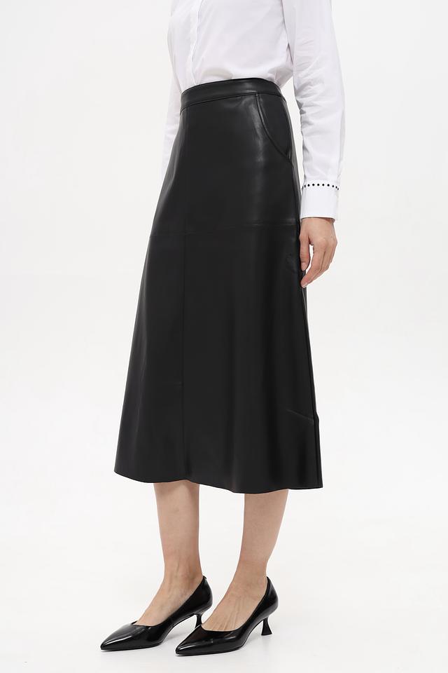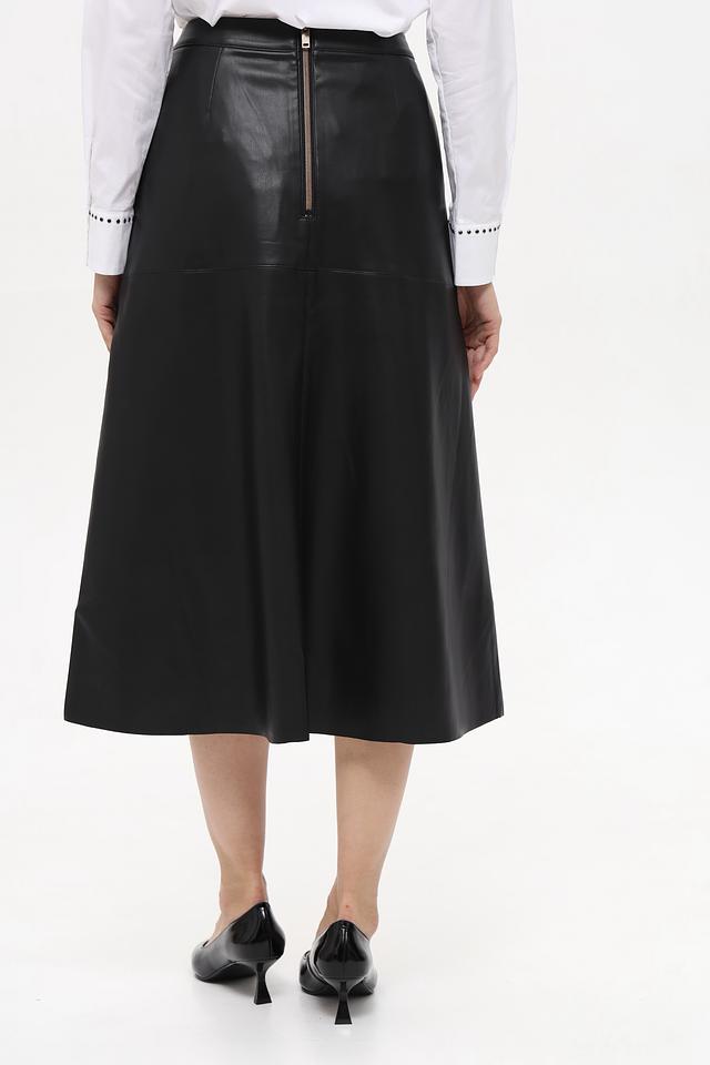 Чёрная юбка от Betty Barclay выполнена из гладкой экокожи. Модель длиной миди с застёжкой-молнией сзади и боковыми карманами станет стильным дополнением к вашему гардеробу. Состав: полиэстер 100%, полиуретан 100%