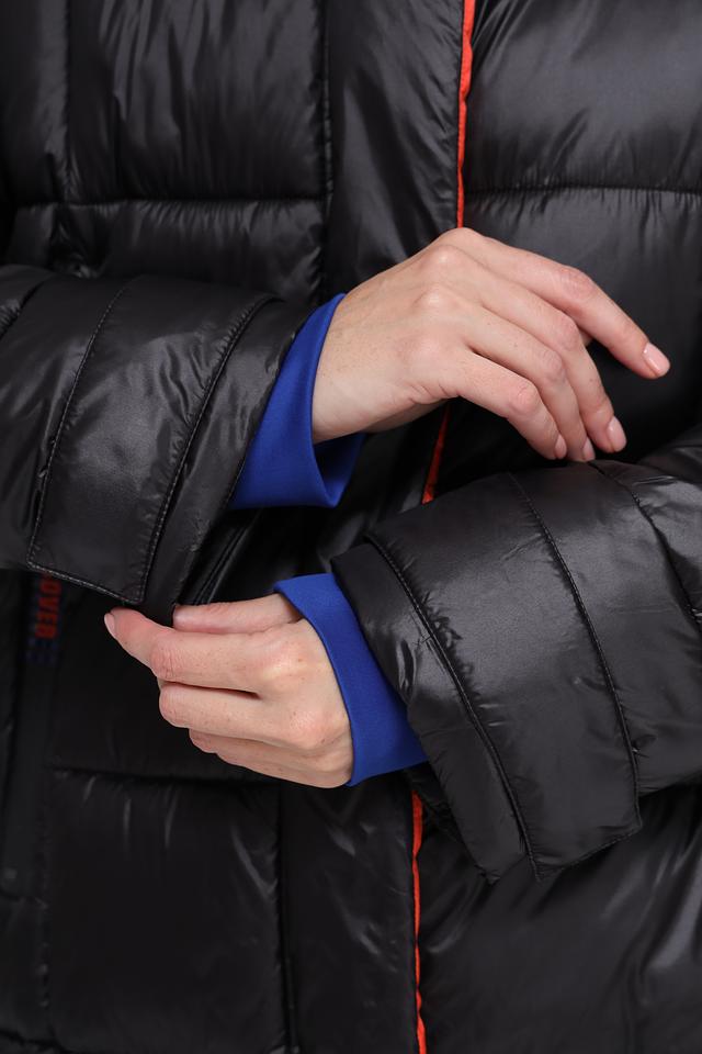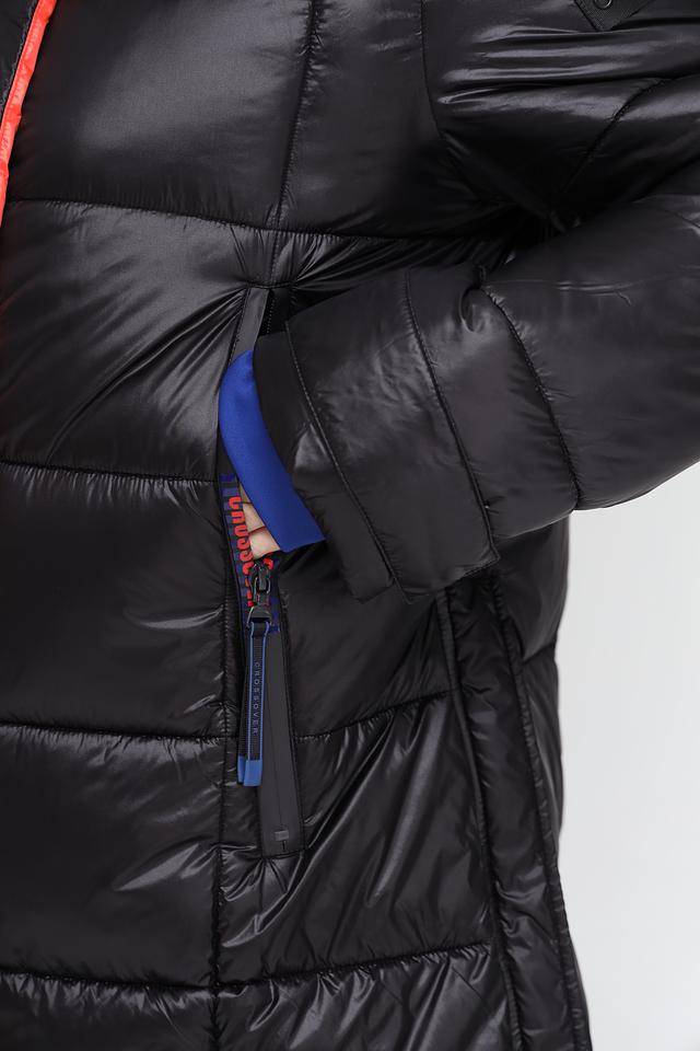 Куртка имеет удобный капюшон, который защитит от ветра и дождя. Яркая оранжевая и синяя подкладка добавляет образу оригинальности. Застежка-молния обеспечивает надежную фиксацию, а манжеты и нижний край куртки дополнены эластичными вставками для лучшей посадки.