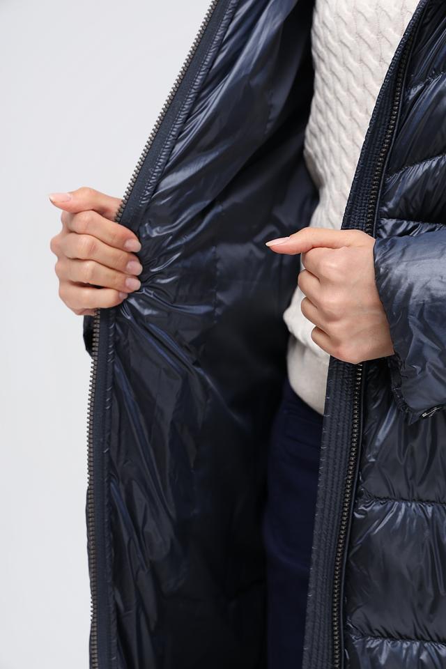 Стильное пальто от Betty Barclay станет незаменимой вещью в холодное время года. Пальто выполнено в темно-синем цвете и имеет стеганую фактуру, что придает ему современный вид.