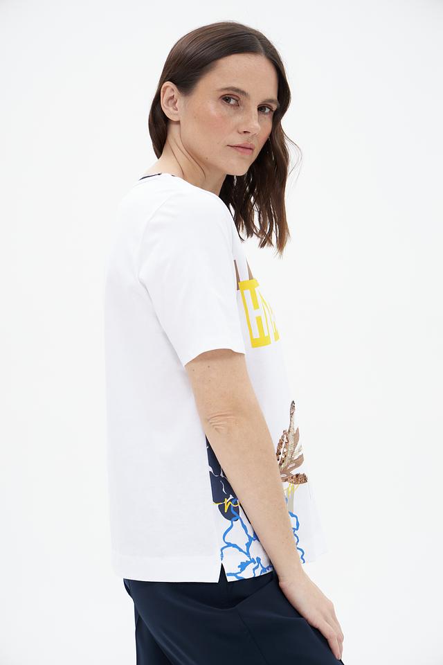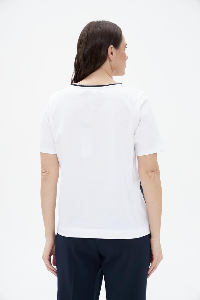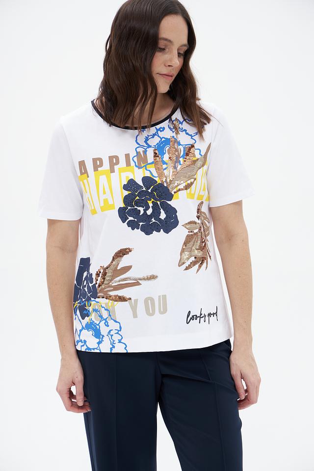 Белая футболка Betty Barclay с ярким цветочным принтом. Изготовлена из 100% хлопка, обеспечивающего комфорт и воздухопроницаемость. Стильный крой и оригинальный дизайн. Состав: хлопок 100%