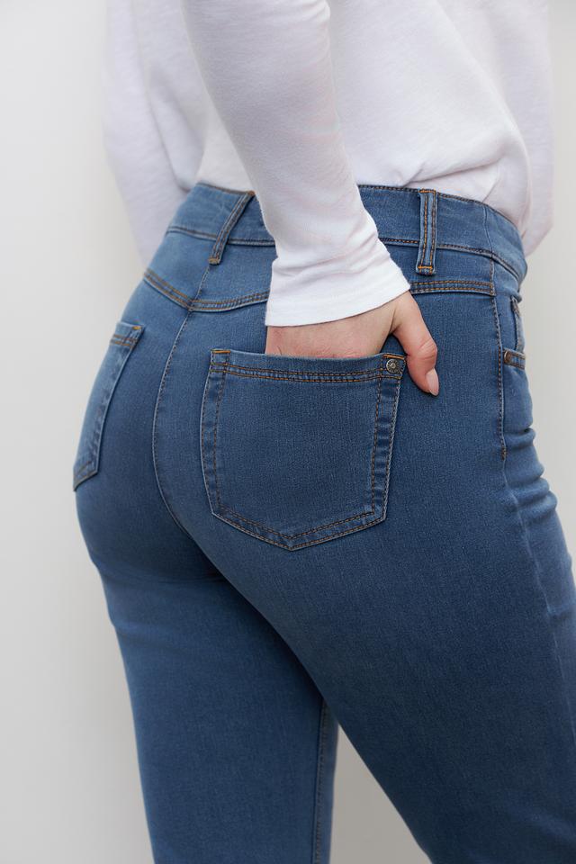 Синие джинсы Betty Barclay классического кроя с эластичным поясом. Модель выполнена из хлопка с добавлением полиэстера и эластана, что обеспечивает комфорт и хорошую посадку по фигуре. Состав: хлопок 64%, полиэстер 29%, эластан 7%
