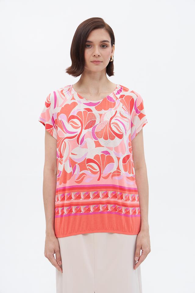 Розовая блузка Betty Barclay с ярким цветочным принтом станет стильным дополнением вашего гардероба. Модель выполнена из мягкой вискозы с добавлением эластана, что обеспечивает комфорт в носке и отличную посадку по фигуре. Подчеркните свою индивидуальность с этой изящной блузкой! Состав: вискоза 95%, эластан 5%