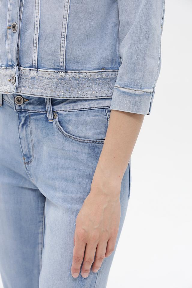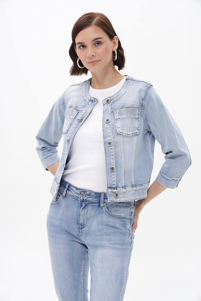 Светло-голубой джинсовый жакет Betty Barclay с ¾ рукавами и застежкой на пуговицы. Модель выполнена из хлопка с добавлением вискозы и полиэстера, что обеспечивает комфорт и удобство в носке. Жакет украшен вышивкой на спине. Состав: хлопок 56%, вискоза 30%, полиэстер 12%, эластан 2%