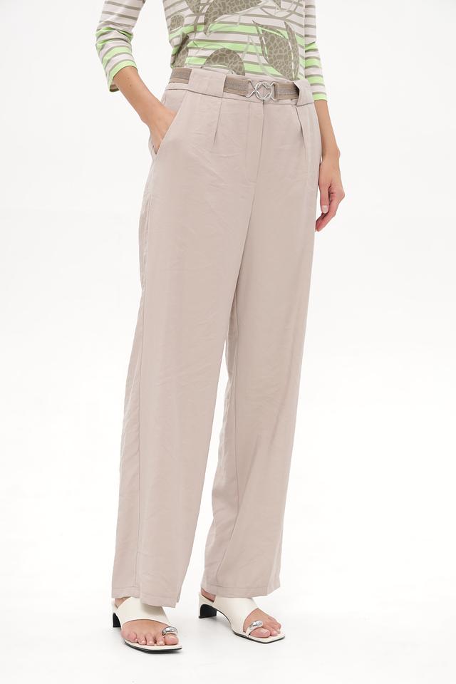 Модель дополнена поясом, который подчеркивает талию и придает брюкам более изысканный вид. Брюки идеально подойдут для работы, встреч с друзьями или особых случаев. Состав: 89% модал, 11% переработ.полиэстер.