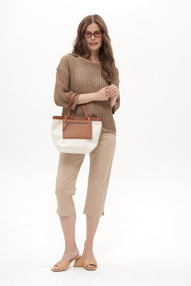 Капри имеют классический крой, стандартную посадку по талии и прямые ноги, слегка зауженные к низу. Предусмотрены пять функциональных карманов: два боковых, два задних и один небольшой накладной карман спереди.