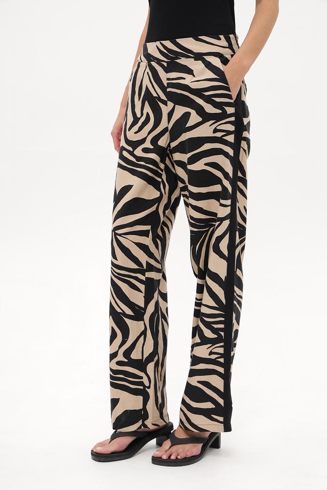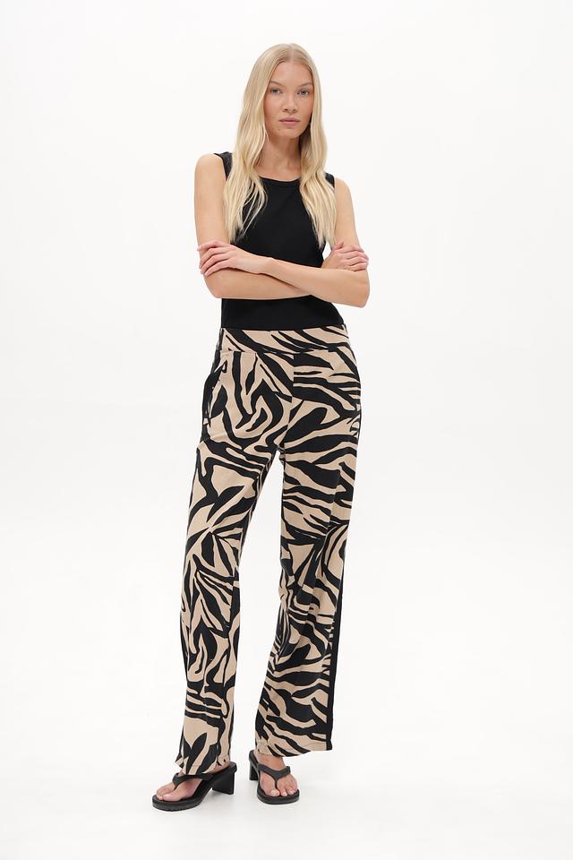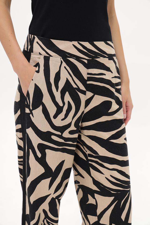 Женские брюки Betty Barclay бежевого цвета с оригинальным принтом в полоску. Модель выполнена из льна с добавлением вискозы для комфорта и лучшей посадки. Состав: лен 55%, вискоза 45%
