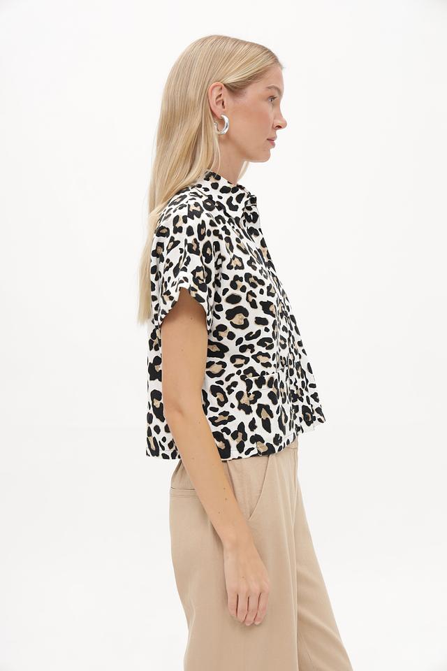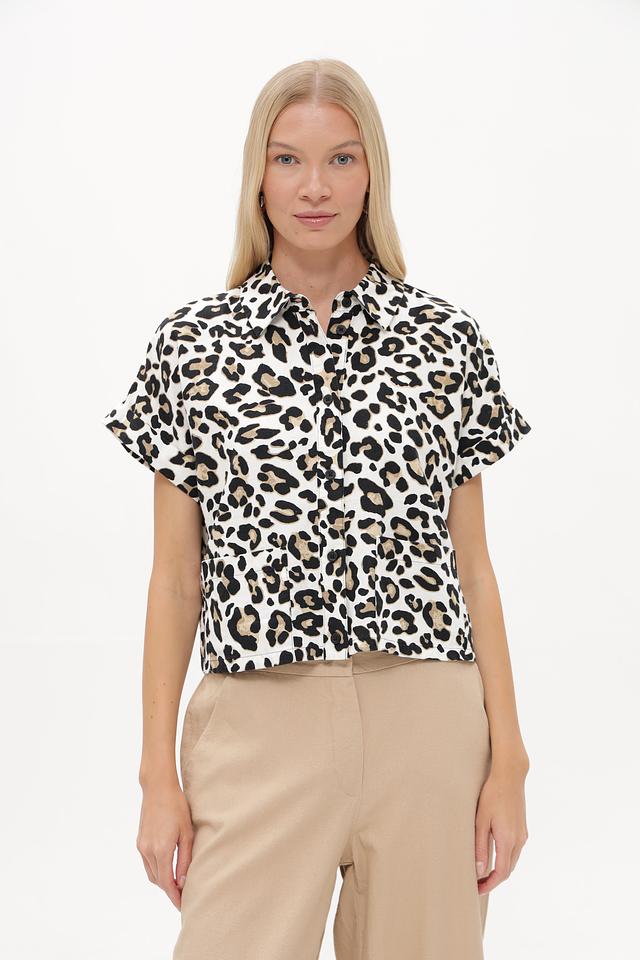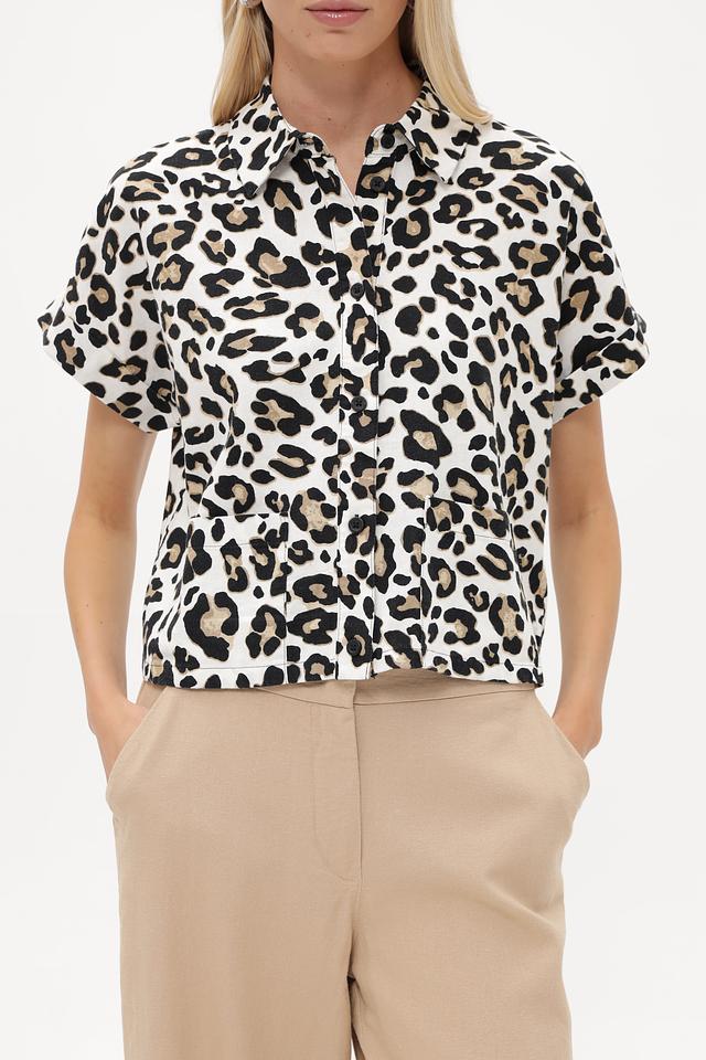 Блуза Betty Barclay белого цвета с леопардовым принтом – стильное и оригинальное решение для создания яркого образа. Модель с короткими рукавами и классическим воротником, застегивается на пуговицы. Состав: лен 55%, вискоза 45%