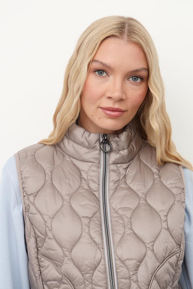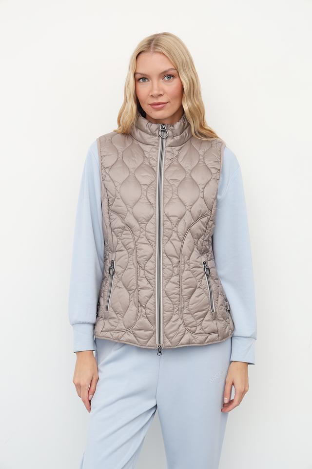 Бежевый цвет жилета универсален и легко сочетается с различными элементами одежды. Стеганая текстура придает изделию современный и стильный вид. Этот жилет идеально подойдет для прохладной погоды и станет отличным выбором для создания повседневных образов.