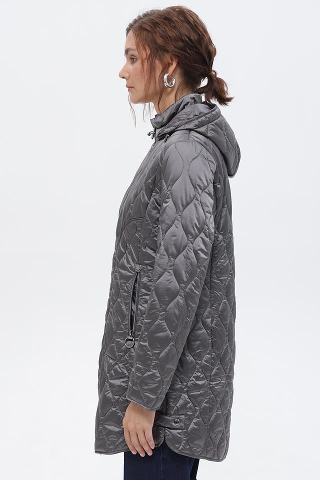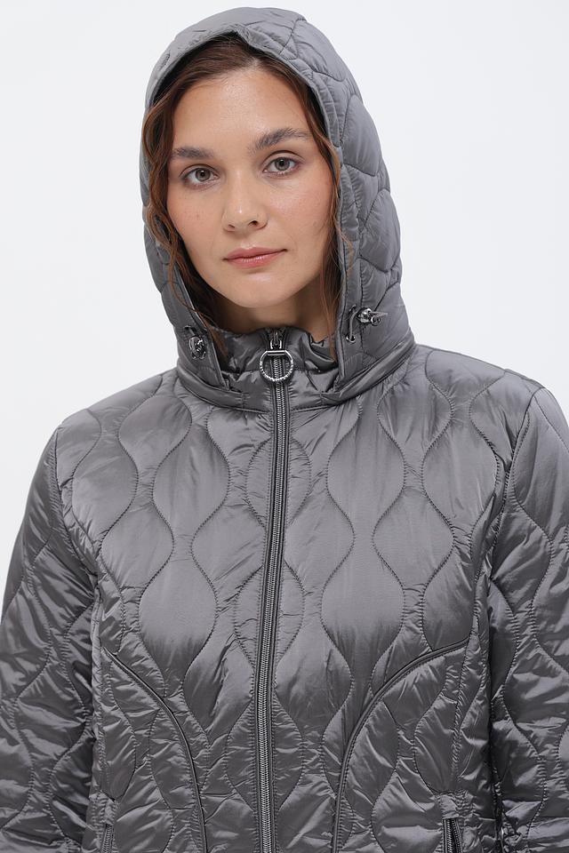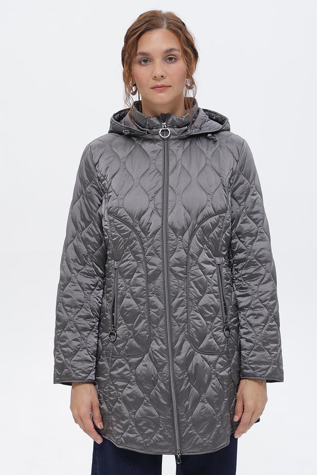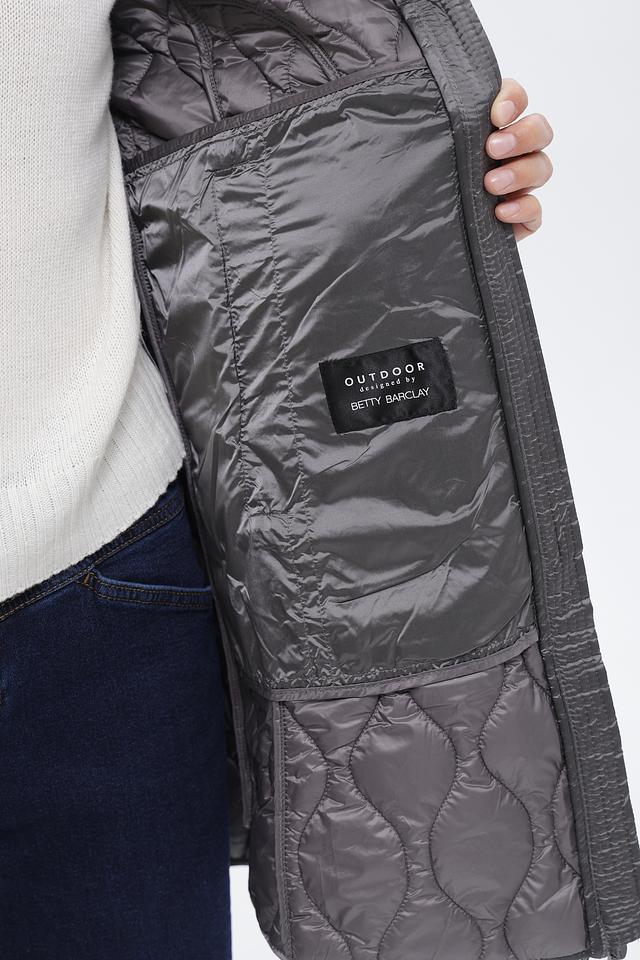 Пальто от Betty Barclay – это идеальное сочетание комфорта и стиля. Данная модель выполнена в сером цвете и имеет стеганую текстуру, которая придает ей современный вид.
