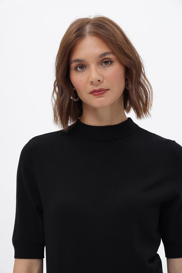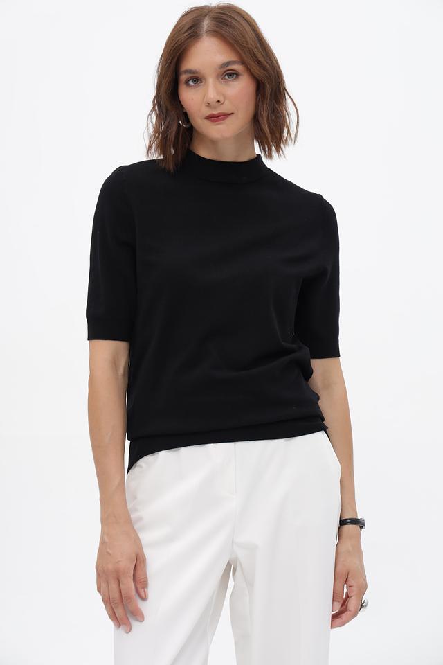 Чёрный пуловер от Betty Barclay из вискозы и полиамида. Модель с коротким рукавом и высоким воротом. Идеально дополнит базовый гардероб. Состав: вискоза 80%, полиамид 20%