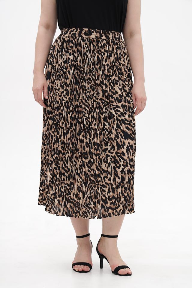 Юбка имеет плиссированную фактуру и длину миди, обеспечивая свободу движений и комфорт в носке. Эластичный пояс гарантирует идеальную посадку по фигуре.