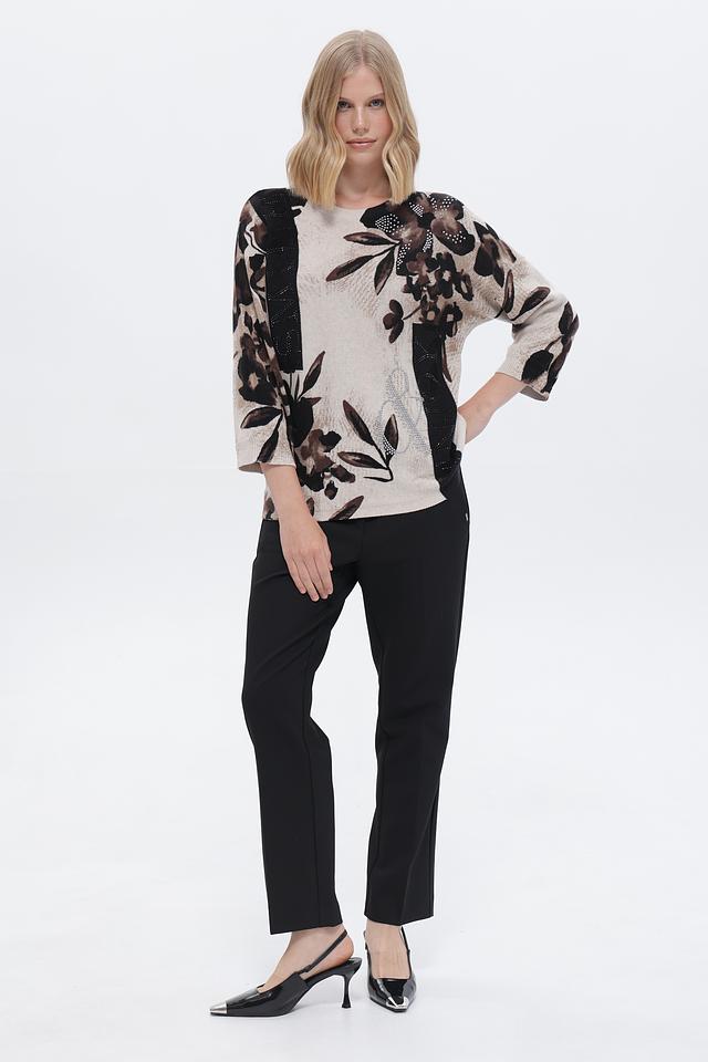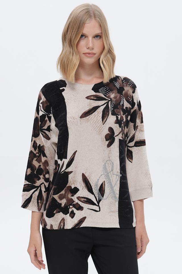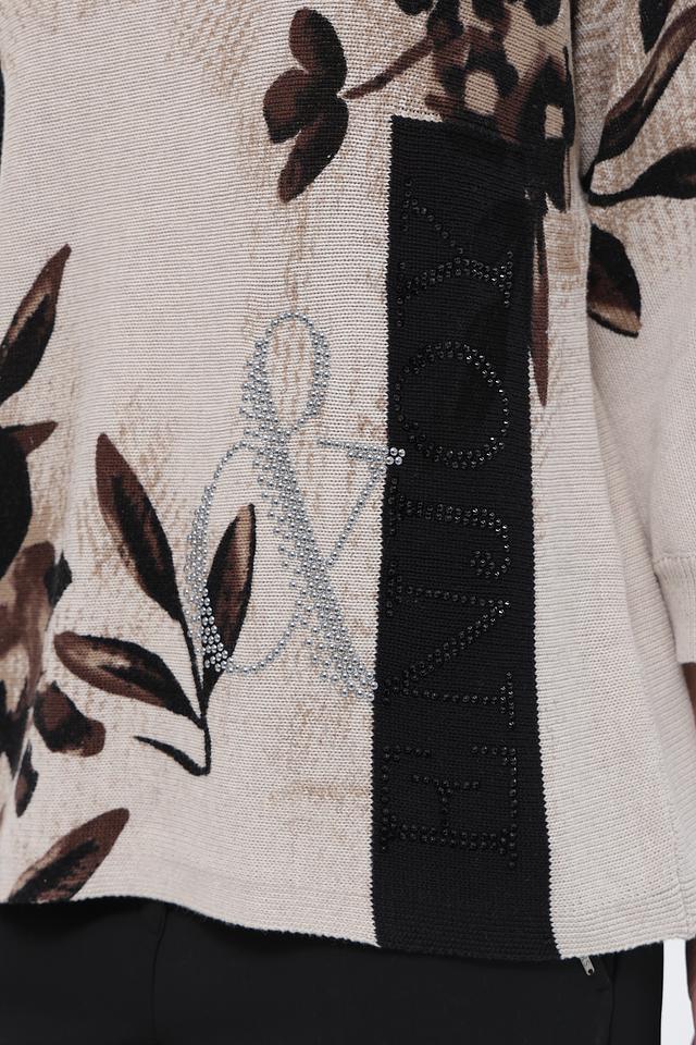 Бежевый пуловер Betty Barclay с оригинальным цветочным принтом и декоративной отделкой из страз. Изготовлен из мягкого трикотажа, обеспечивающего комфорт и удобство. Идеальный выбор для создания элегантного повседневного образа. Состав: хлопок 100%