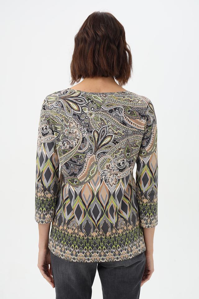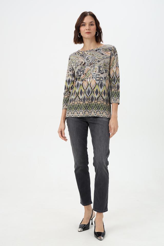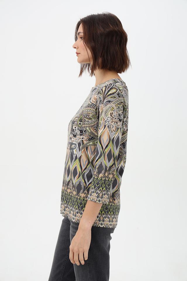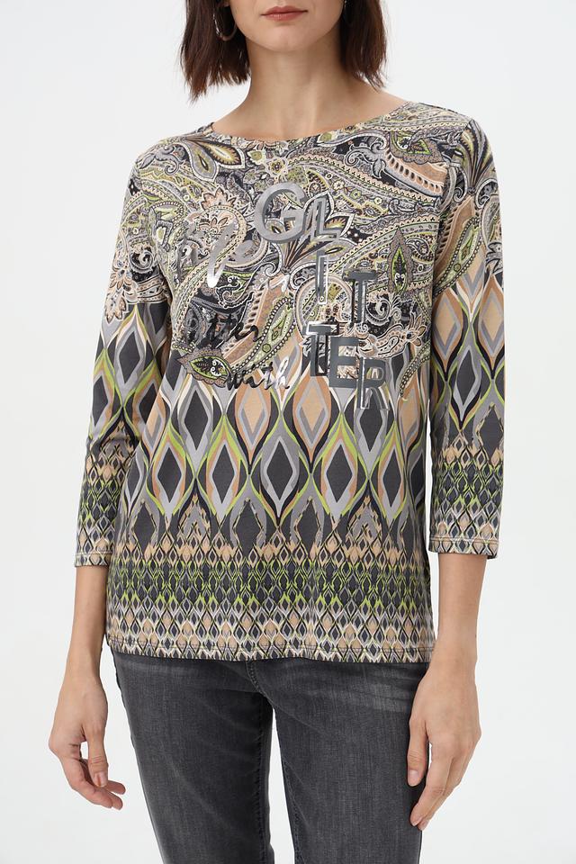Бежевая блуза Betty Barclay с оригинальным принтом и рукавом 3/4. Изготовлена из мягкого хлопка с добавлением модала для комфорта. Идеальный выбор для создания стильного повседневного образа. Состав: хлопок 50%, модал 50%