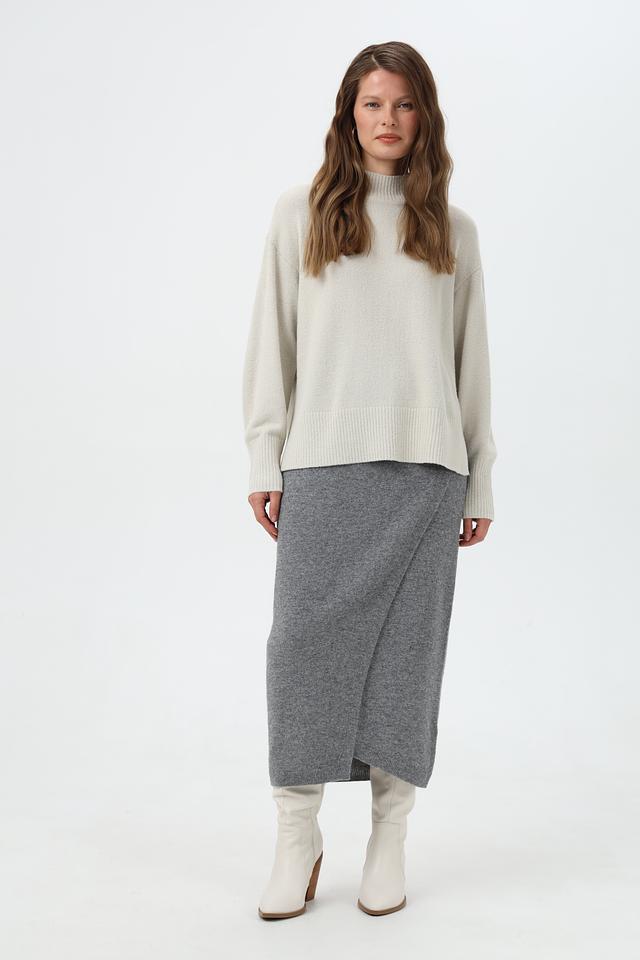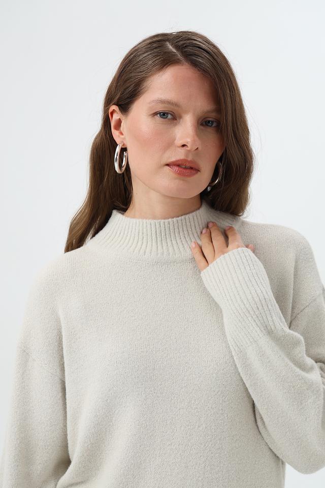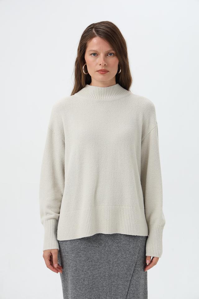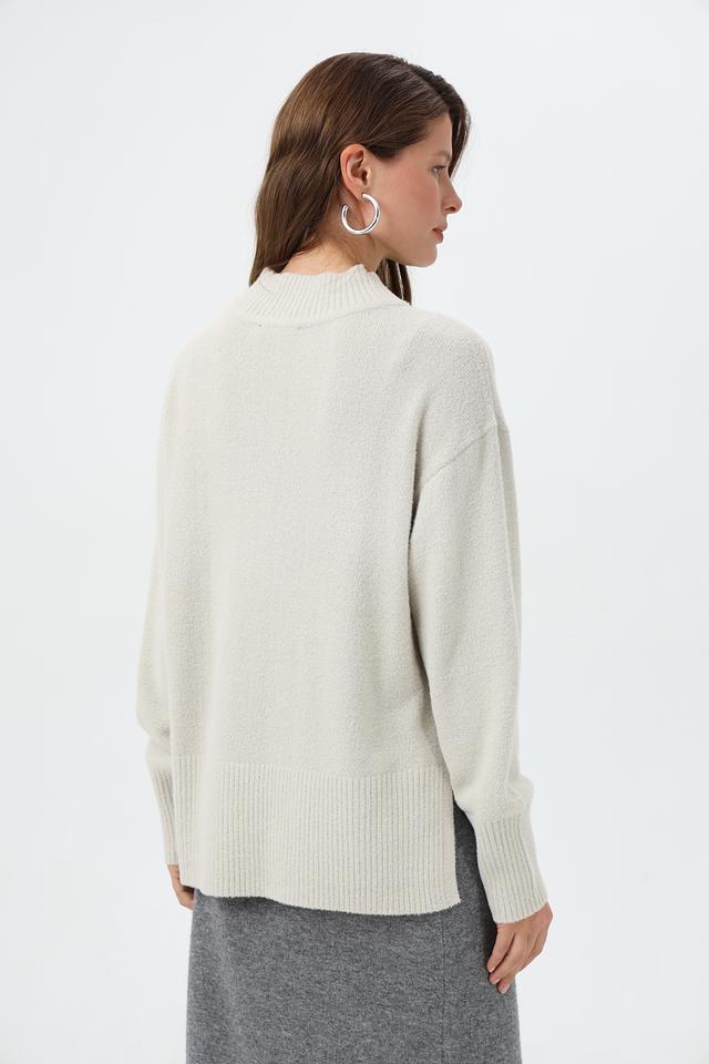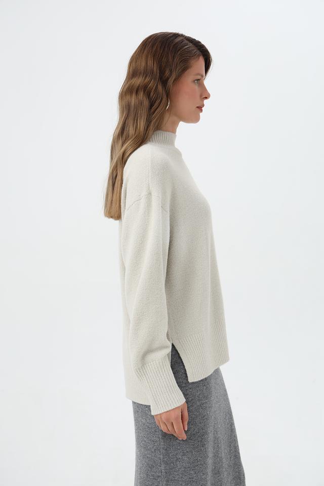 Пуловер имеет высокий ворот, который добавляет образу изысканности. Свободный крой не стесняет движений и позволяет создавать различные комбинации с другой одеждой. Длинные рукава делают этот пуловер идеальным для прохладной погоды.