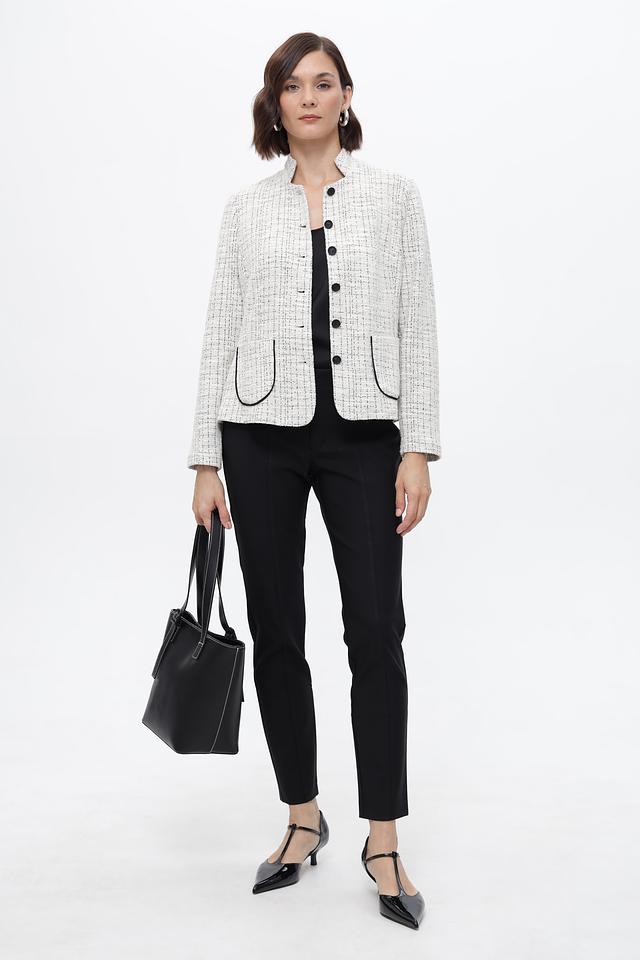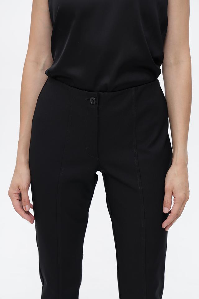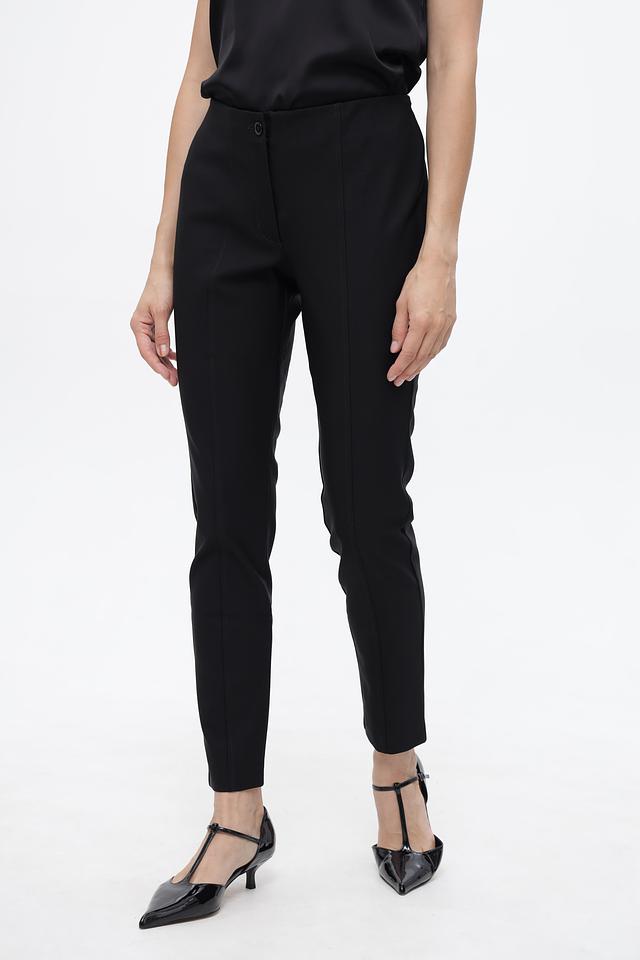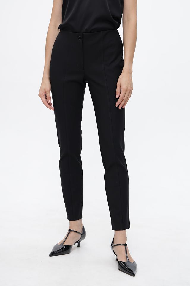 Эта универсальная модель станет отличным дополнением к вашему гардеробу. Брюки идеально сочетаются с блузками, рубашками и жакетами, позволяя создавать как деловые, так и повседневные образы. Состав: полиамид 88%, эластан 12%.