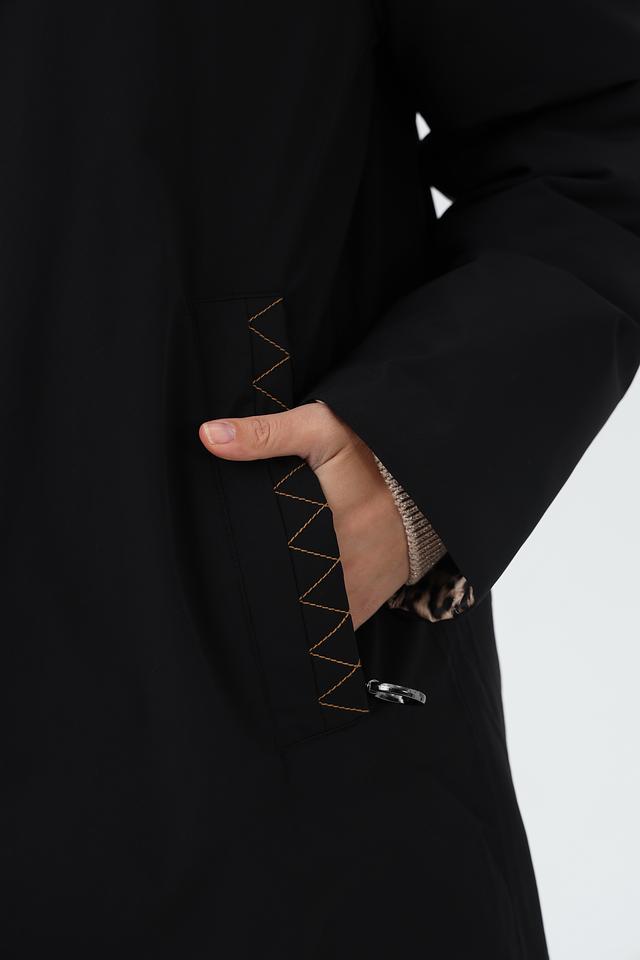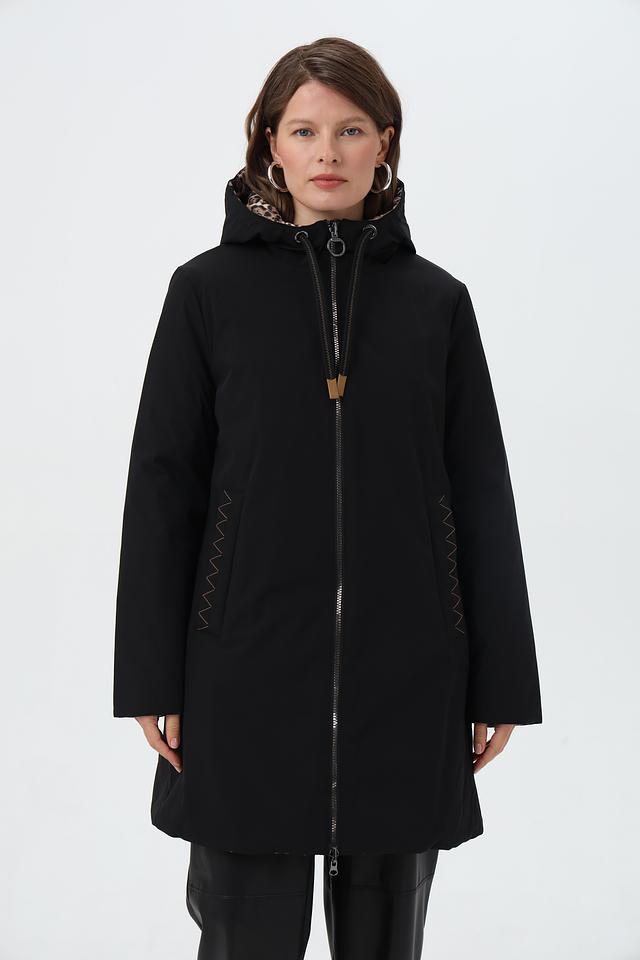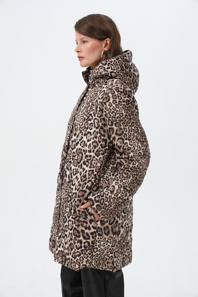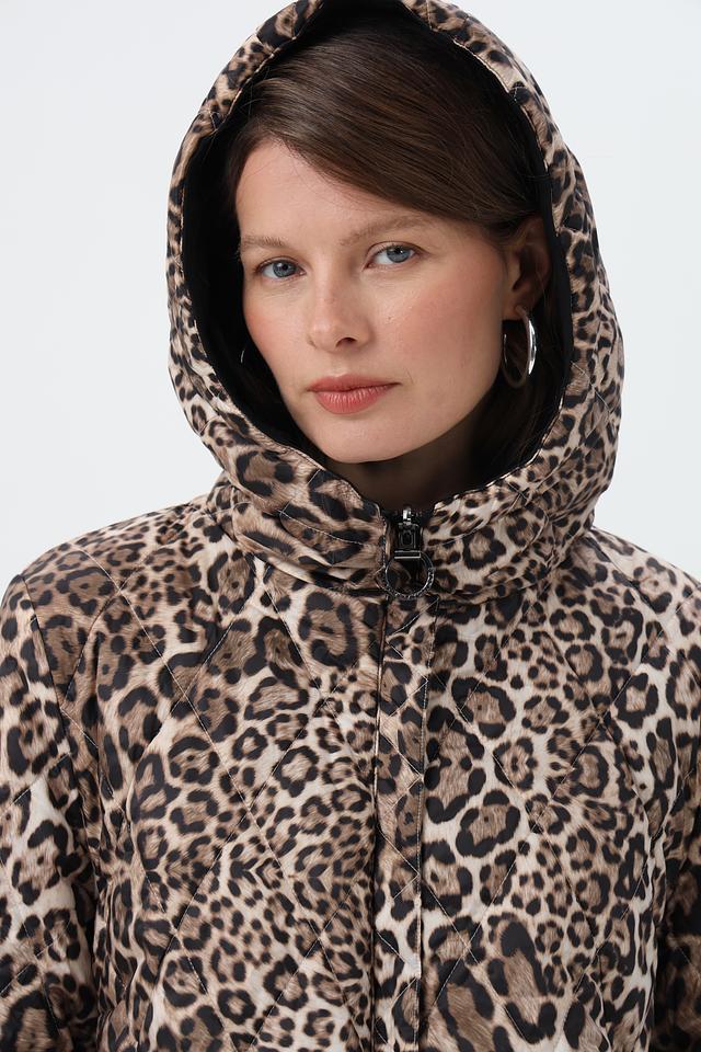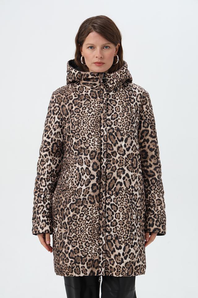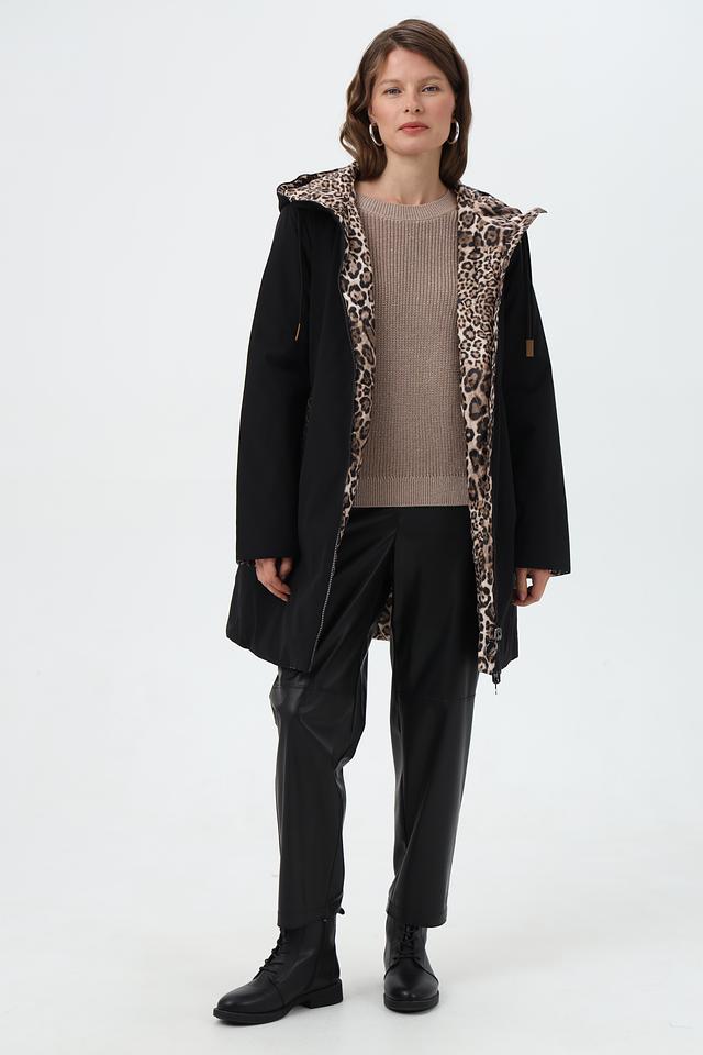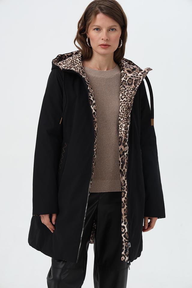 Особенностью данной модели является капюшон, отделанный леопардовым принтом, который добавляет образу динамичности и индивидуальности. Куртка имеет удобные боковые карманы.