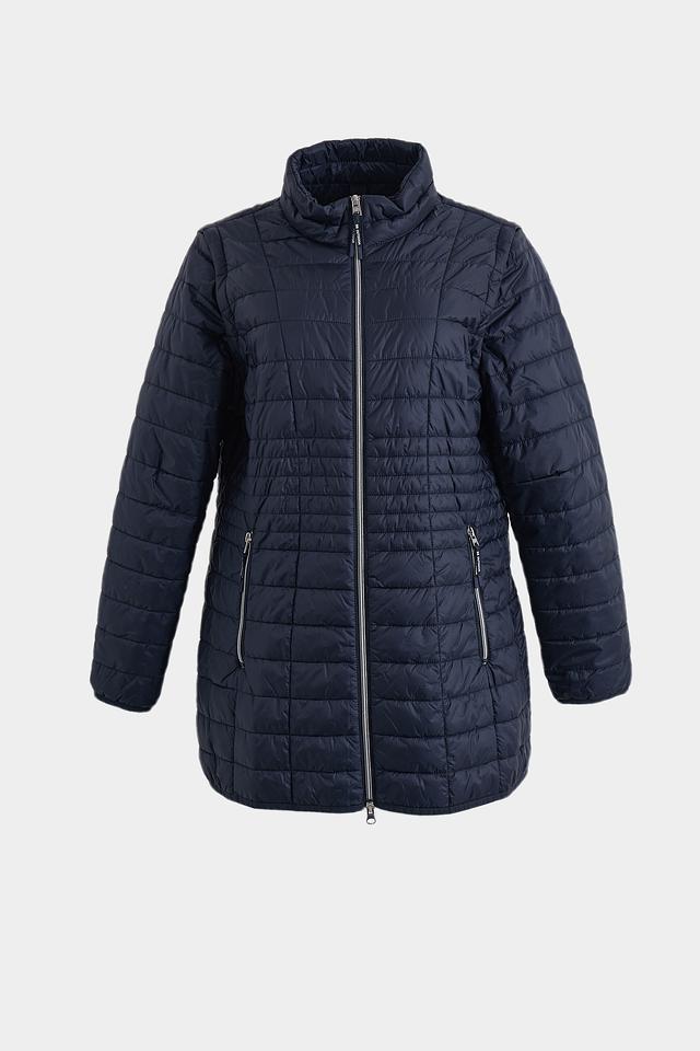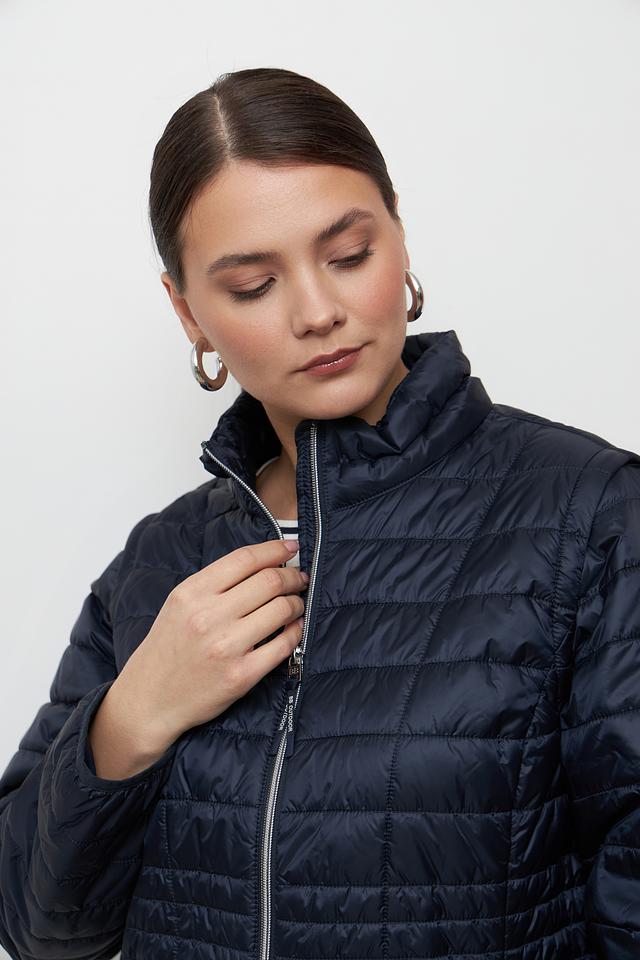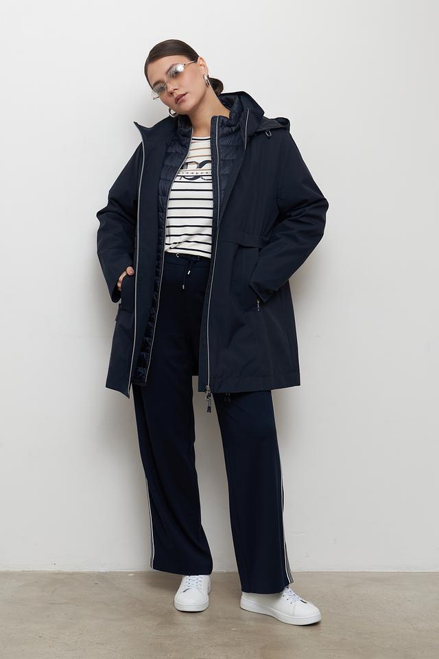 Тёмно-синее пальто от Betty Barclay – это стильная и практичная верхняя одежда для прохладной погоды. Модель выполнена из 100% полиэстера, имеет капюшон и застегивается на молнию. Состав: полиэстер 100%