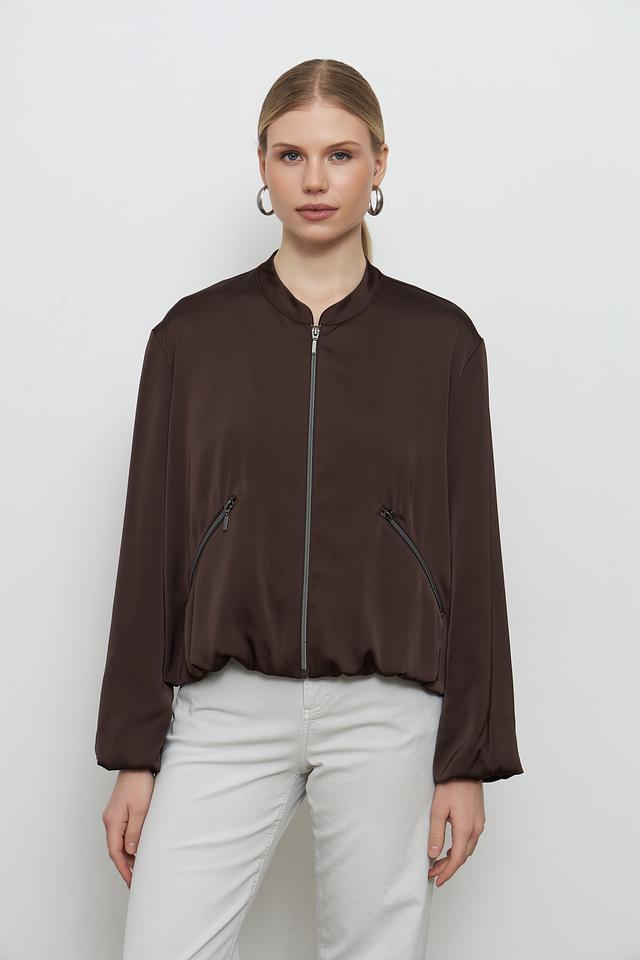 Жакет Betty Barclay коричневого цвета – стильная модель на молнии с боковыми карманами. Изготовлен из гладкой ткани, имеет слегка заниженную линию плеч и свободный крой. Идеальный выбор для создания модных образов. Состав: полиэстер 100%