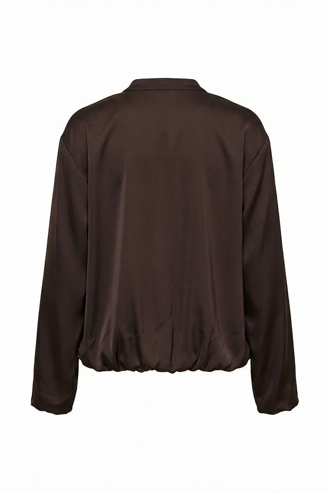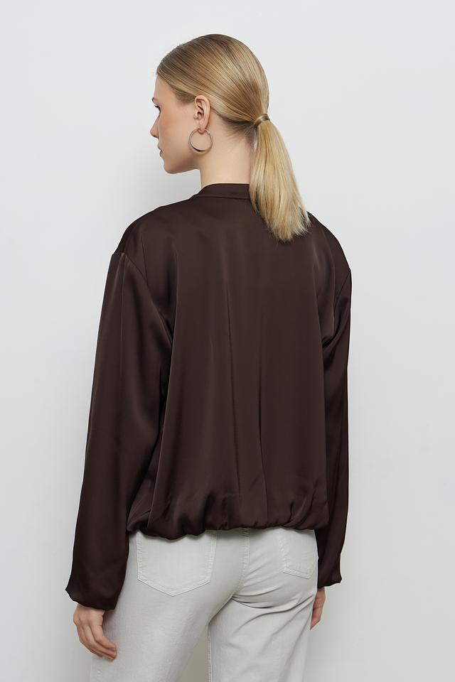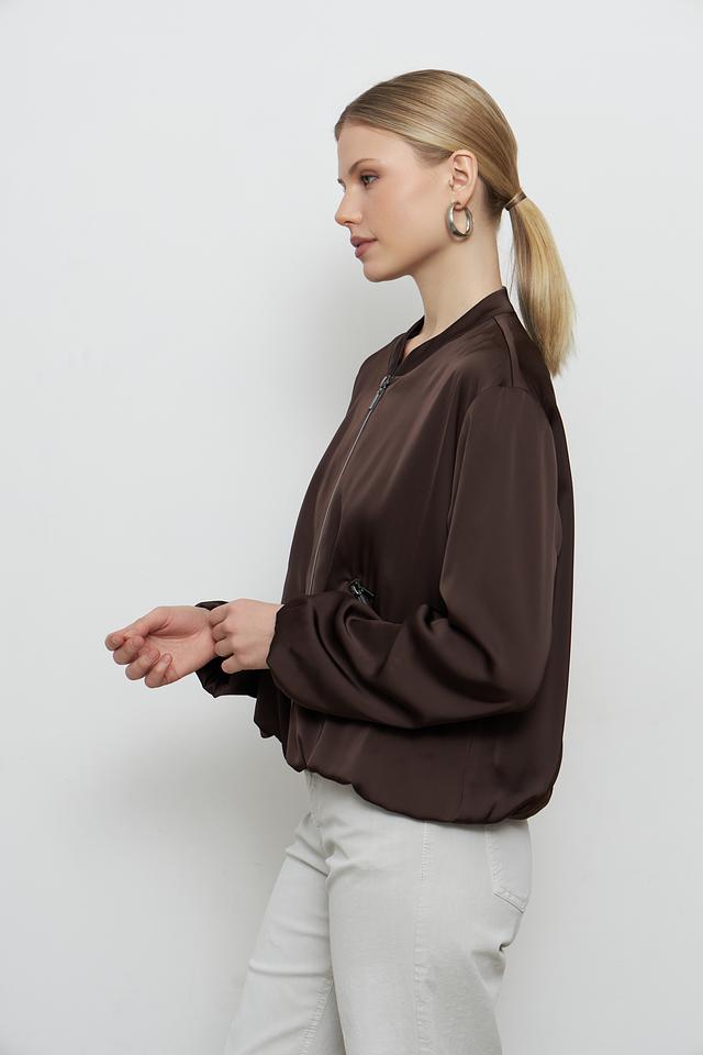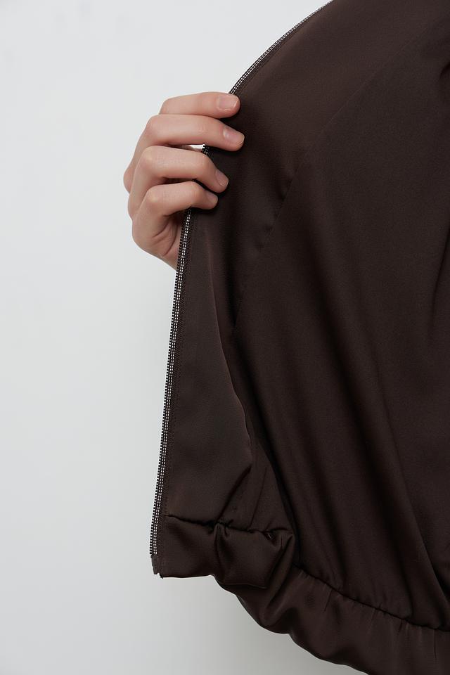 Коричневый цвет жакета придаёт ему элегантность и универсальность, позволяя легко сочетать его с различными элементами гардероба.