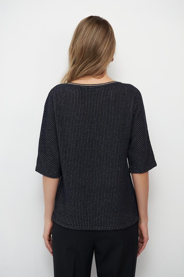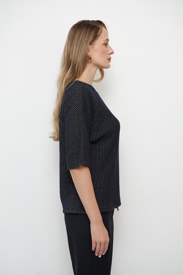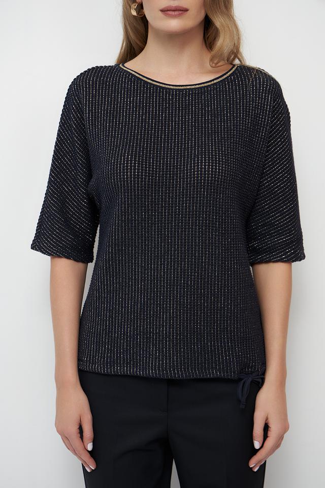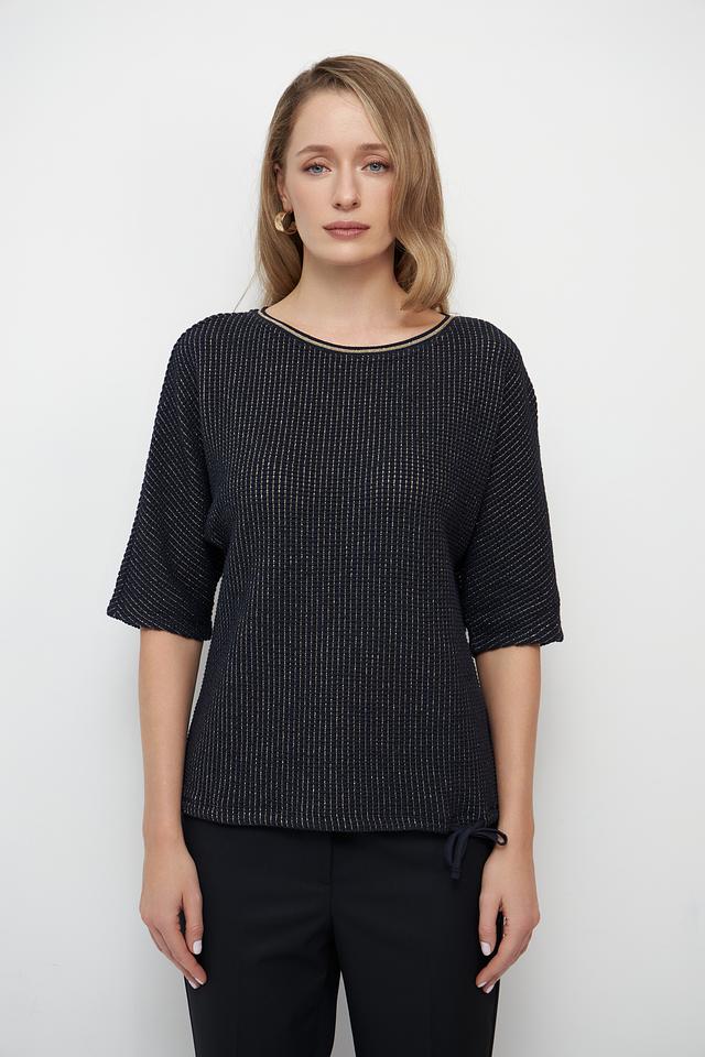 Чёрный пуловер от Betty Barclay с вертикальной полоской и короткими рукавами. Изготовлен из мягкого хлопка с добавлением полиамида и эластана для комфорта и сохранения формы. Стильный и удобный выбор для повседневного гардероба. Состав: хлопок 91%, полиамид 3%, эластан 3%, полиэстер 3%