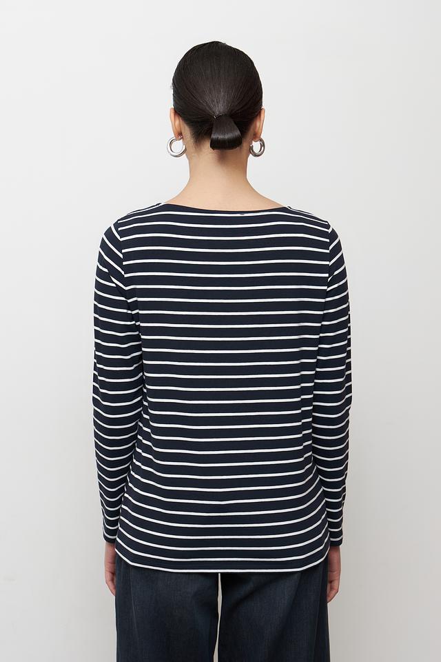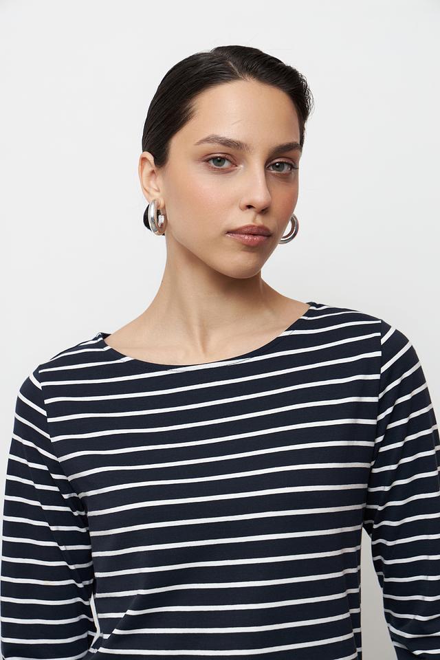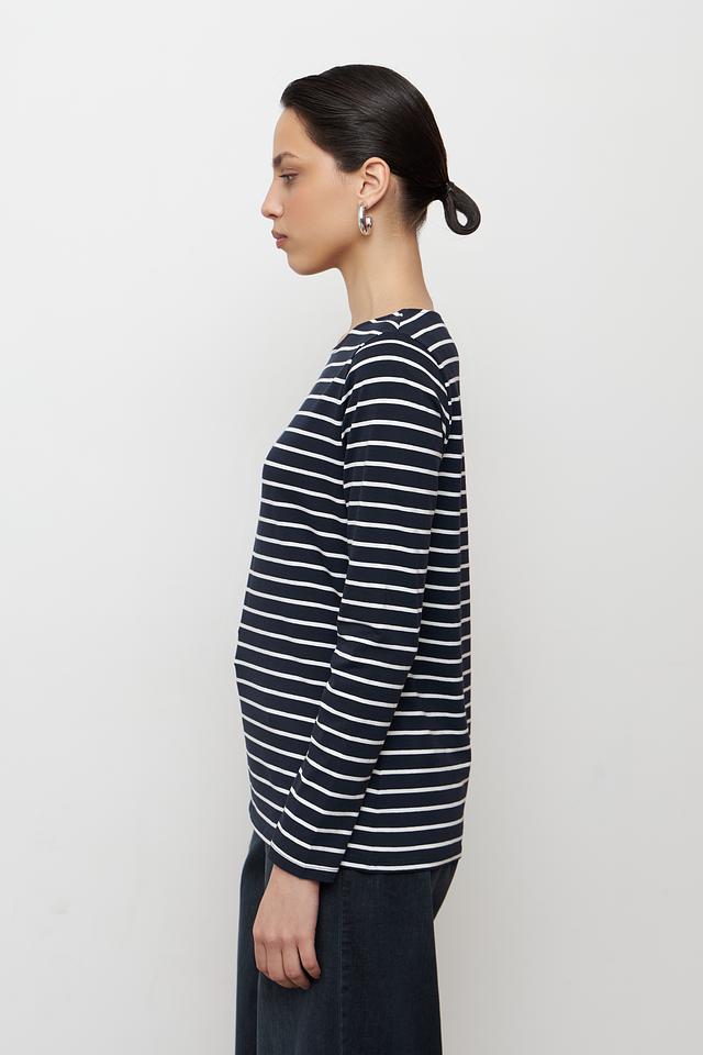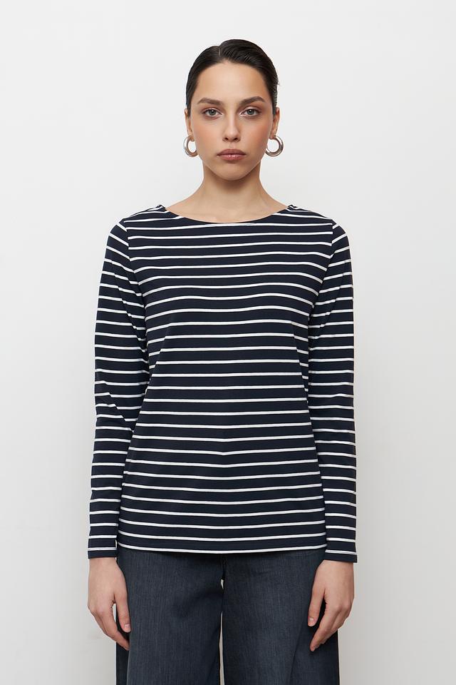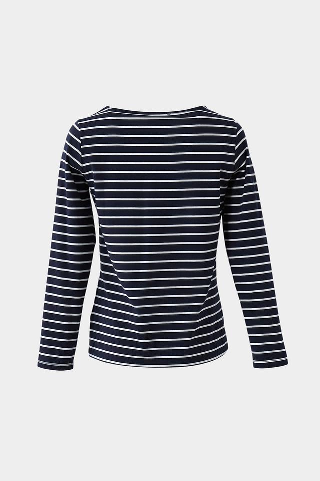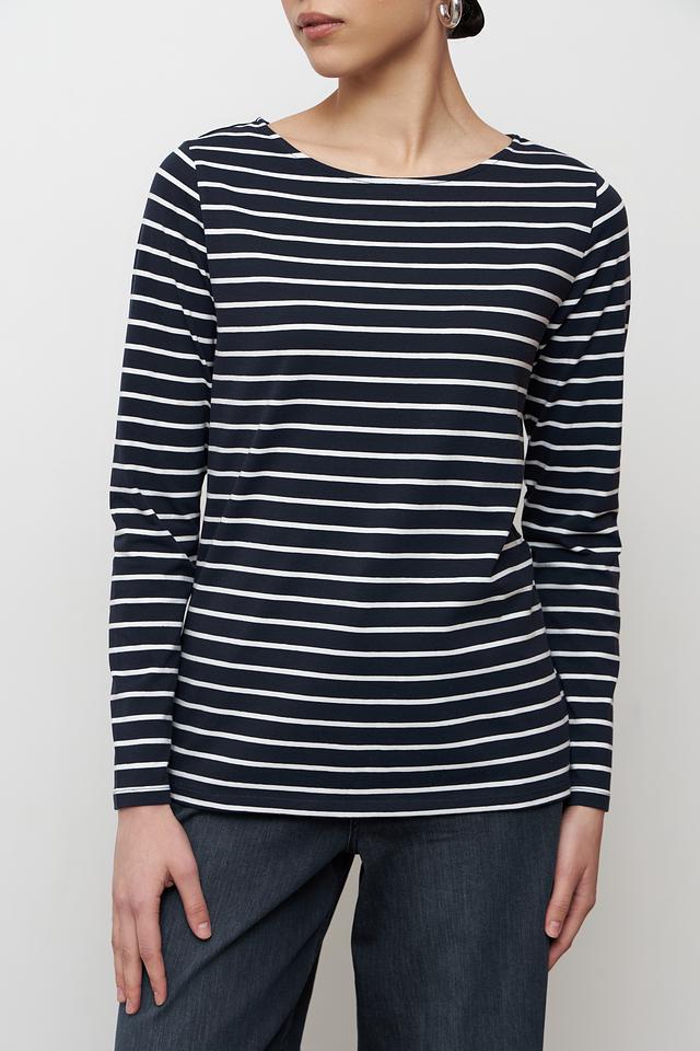Женская футболка Betty Barclay классического кроя, выполнена в сине-белую полоску. Изготовлена из мягкого хлопка с добавлением эластана для комфорта и сохранения формы. Идеально подходит для создания повседневных образов. Состав: хлопок 95%, эластан 5%