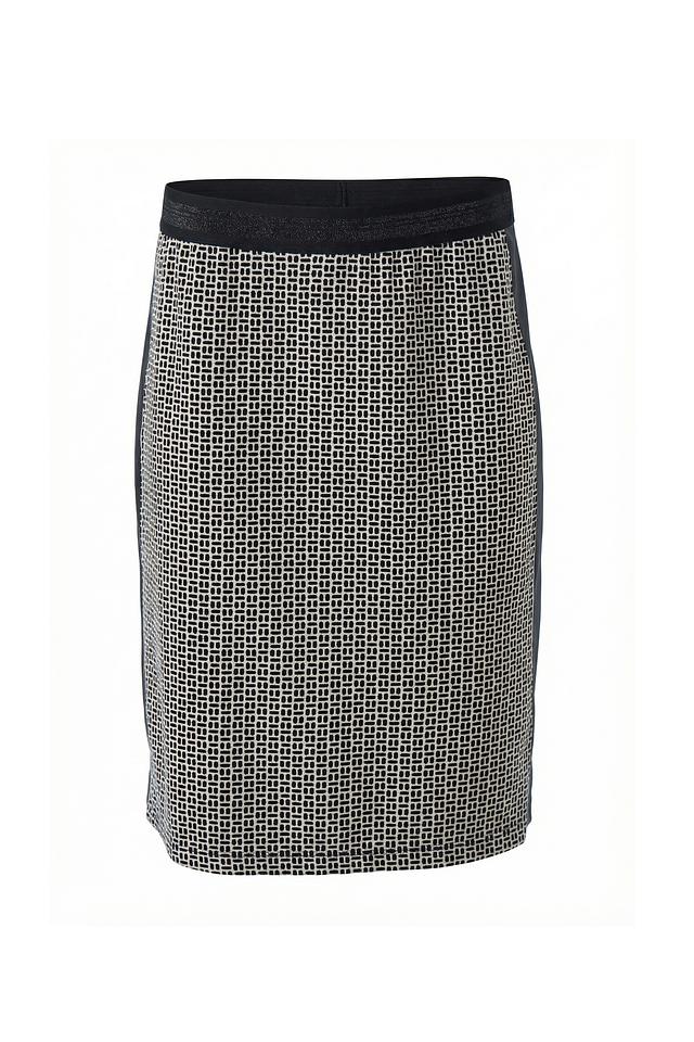 Юбка Betty Barclay чёрно-белого цвета с геометрическим принтом и кожаной вставкой – стильное решение для создания элегантного образа. Модель длиной до колена выполнена из качественного сочетания полиэстера, вискозы и эластана. Состав: полиэстер 67%, вискоза 30%, эластан 3%