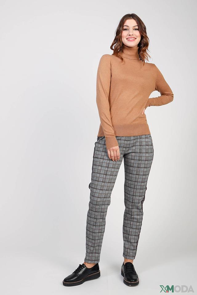 Брюки имеют удобный крой, который подчеркивает фигуру, но не сковывает движения. Благодаря составу ткани, включающему полиэстер, хлопок, вискозу, полиамид и эластан, брюки приятны к телу, хорошо держат форму и практически не мнутся.