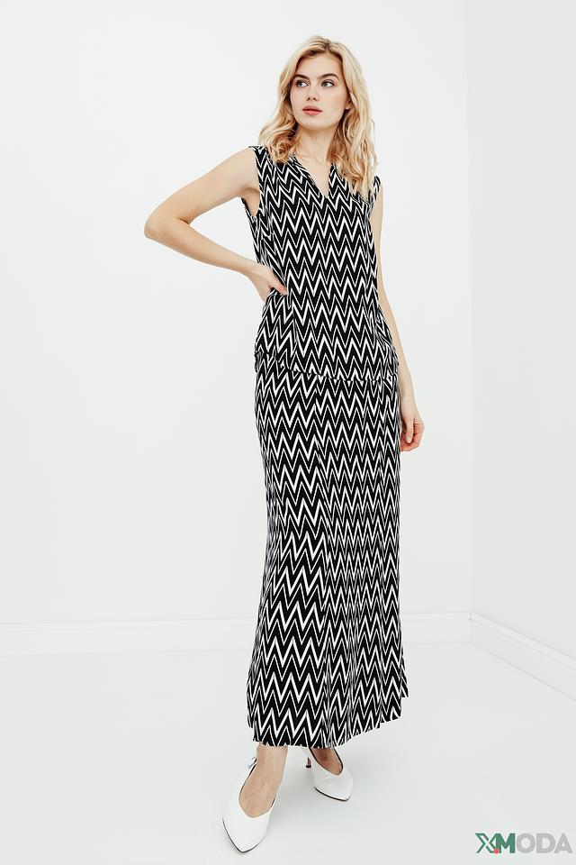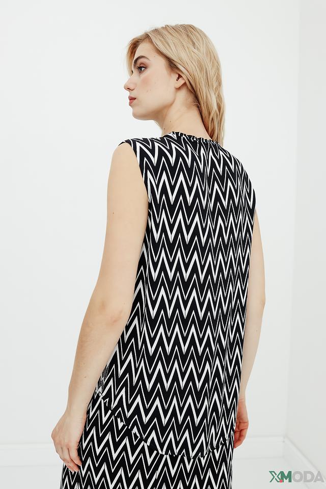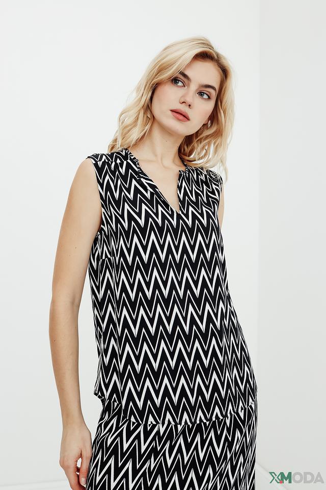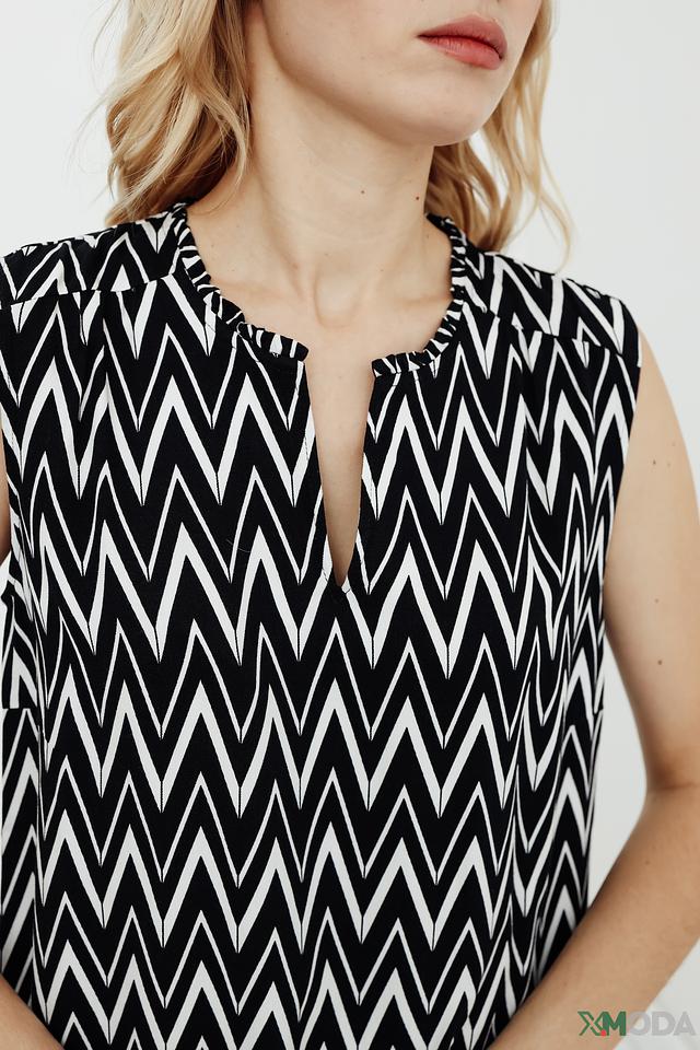 Топ Betty Barclay чёрного цвета с геометрическим принтом "зигзаг" станет стильным дополнением к вашему гардеробу. Модель без рукавов с V-образным вырезом и длиной миди. Состав: вискоза 100%