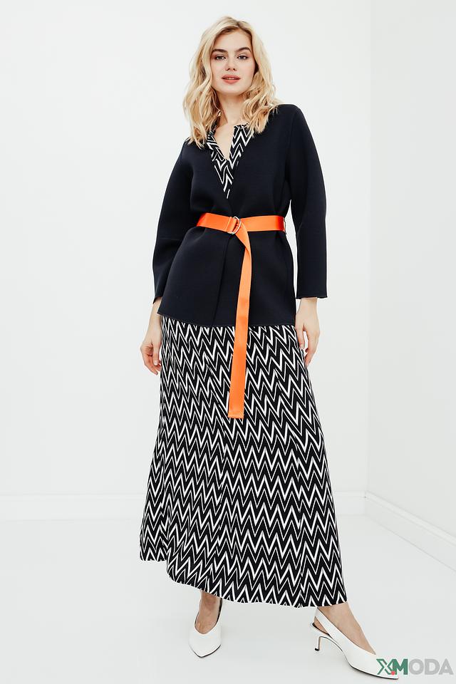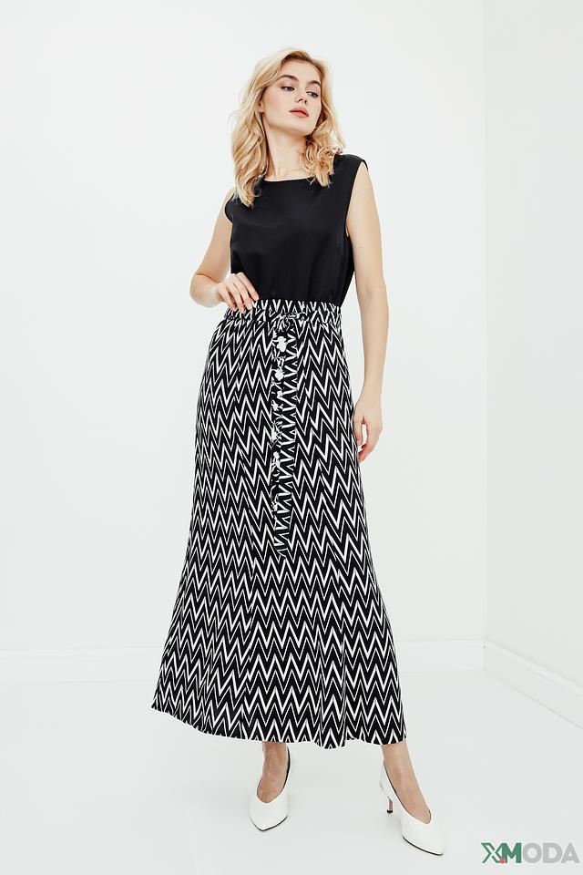 Юбка Betty Barclay чёрно-белого цвета с геометрическим принтом "зигзаг" станет стильным дополнением вашего гардероба. Модель выполнена из мягкой вискозы, имеет завышенную талию и удобный пояс. Состав: вискоза 100%