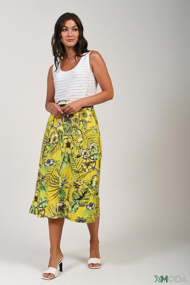 Яркий цветочный принт на жёлтом фоне делает эту юбку идеальным выбором для создания летних и весенних образов. Модель имеет эластичный пояс на талии, который обеспечивает комфортную посадку и свободу движений.