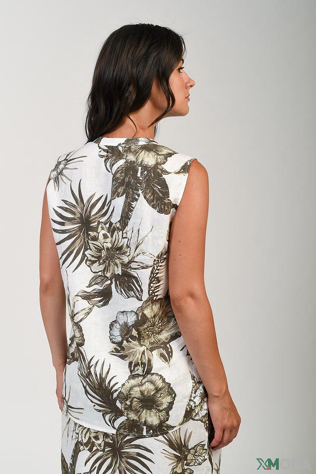 Этот топ станет прекрасным дополнением к вашему летнему гардеробу, сочетаясь с юбками, брюками или шортами. Он идеально подходит для создания повседневных и нарядных образов. Состав топа – 100% лен, что гарантирует его долговечность и экологичность.