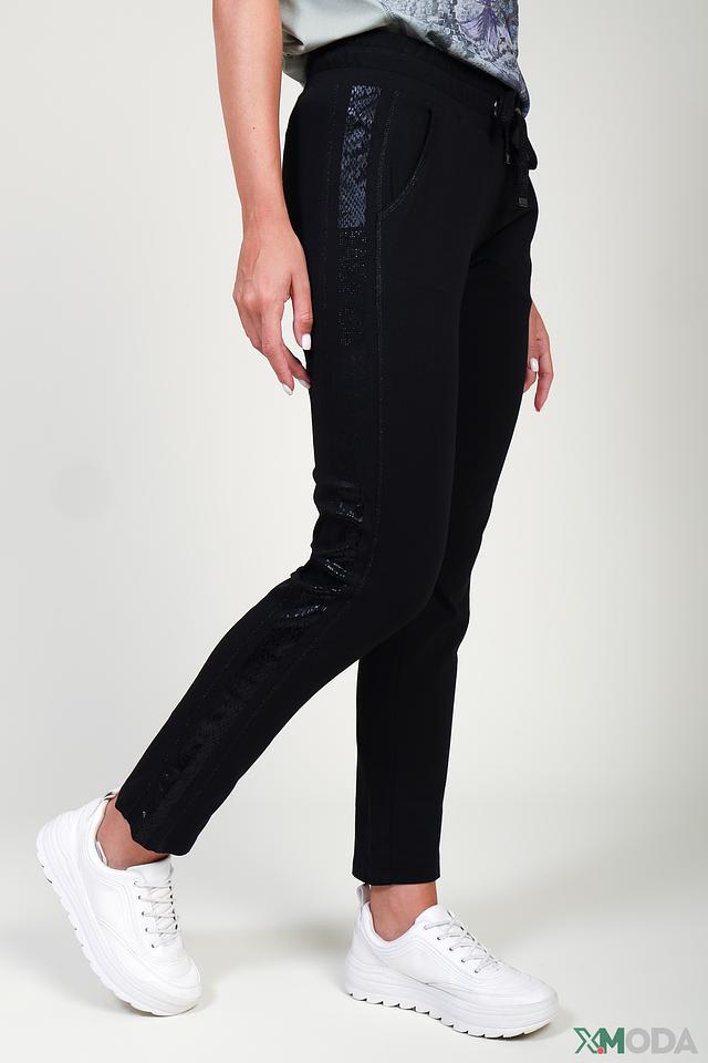 Особенностью данной модели является декоративная полоса с блестками, расположенная по боковой части брюк. Она добавляет образу изысканности и привлекает внимание. Брюки имеют удобный пояс на резинке и завязки, что обеспечивает комфортную посадку и позволяет регулировать облегание. Данная модель станет отличным выбором для повседневной носки и создания стильных образов.