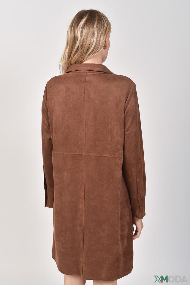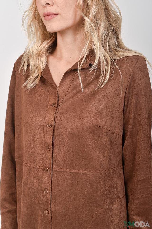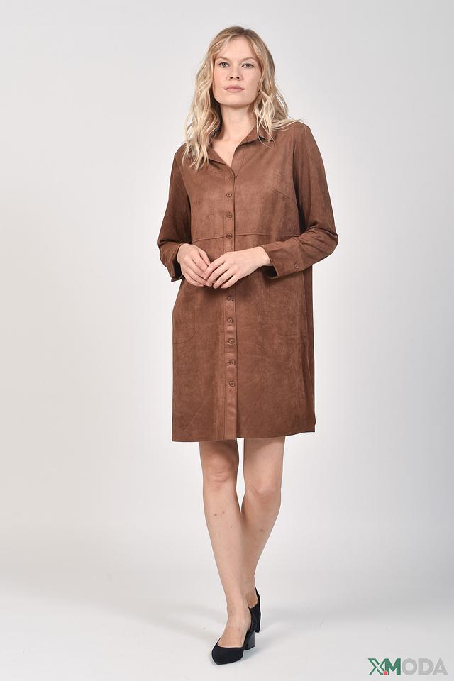 Платье Betty Barclay коричневого цвета – стильная модель рубашечного кроя с длинным рукавом и застежкой на пуговицы. Изготовлено из мягкой ткани с имитацией замши, что придает изделию особый шарм и комфорт. Состав: полиэстер 92%, эластан 8%