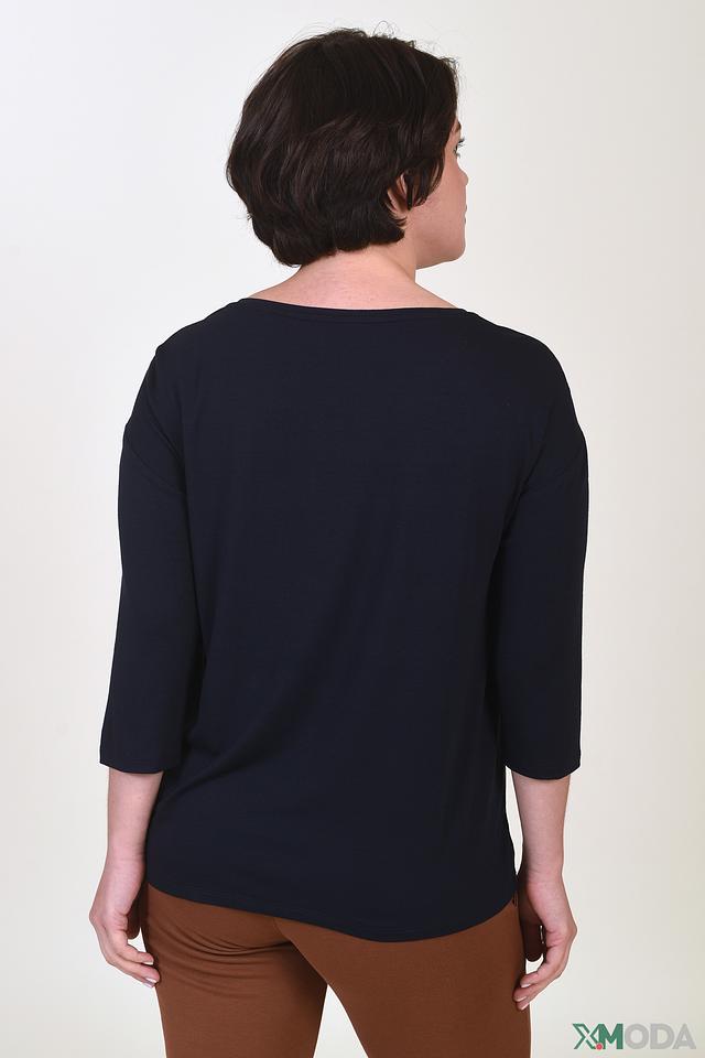 Модель имеет удобный прямой крой, который подчеркивает фигуру, не сковывая движений. Короткие рукава 3/4 делают блузу универсальной для любого времени года. Вырез горловины округлый, что придает образу женственность.