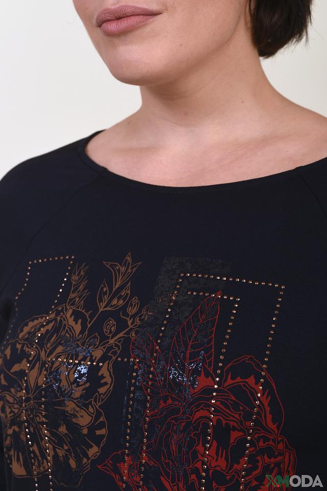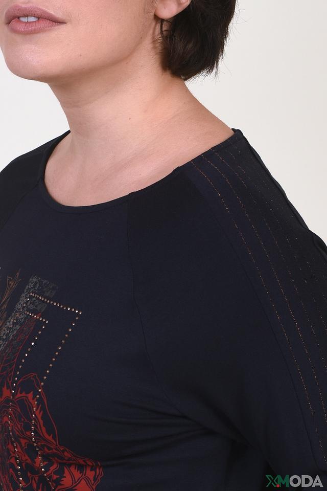 Особенностью данной модели является яркая вышивка на лицевой стороне, выполненная в золотистых, красных и синих тонах. Вышивка придает блузе оригинальность и выразительность. Рукава блузы длиной 3/4, что делает ее идеальной для теплой погоды.