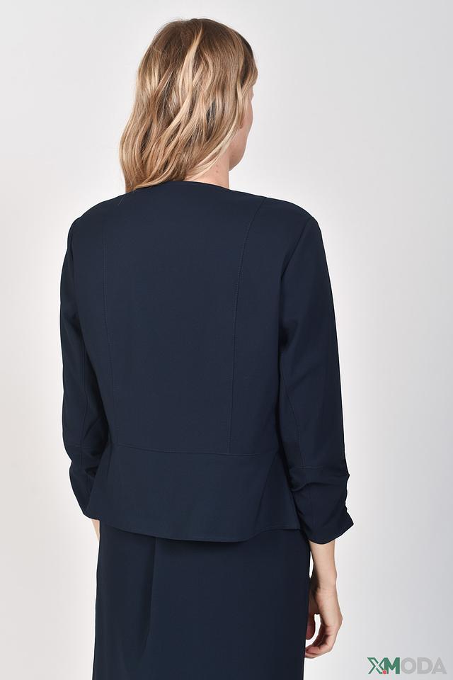 Жакет застегивается на потайные застежки, что создает аккуратный и лаконичный вид. Состав ткани: 86% полиэстер, 14% эластан, что обеспечивает комфорт в носке и легкий уход.