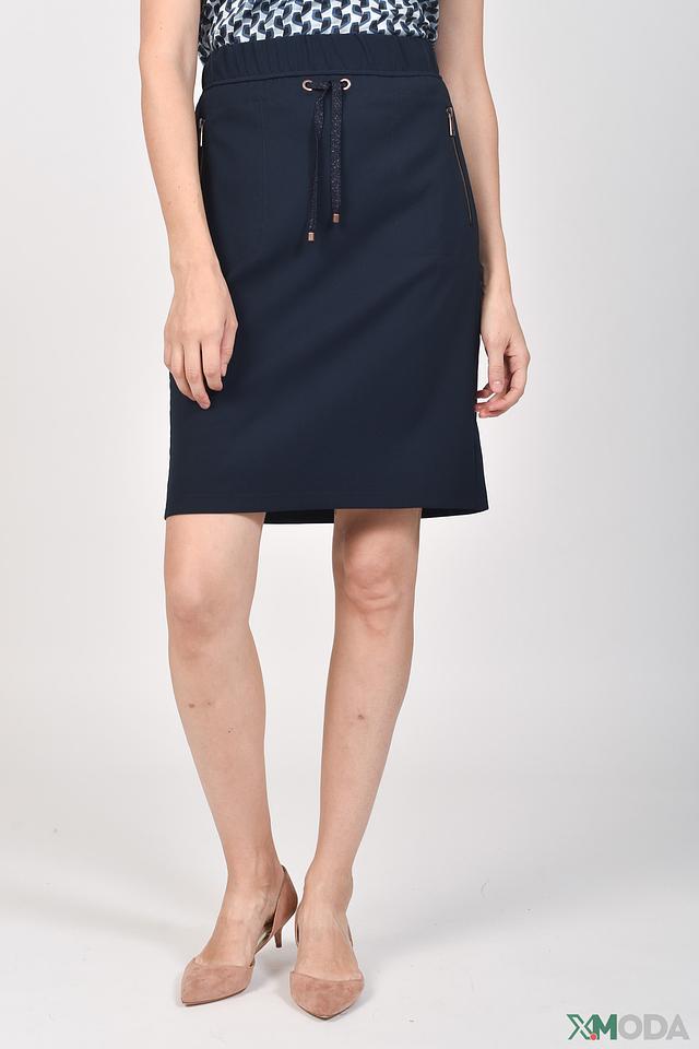 Юбка Betty Barclay темно-синего цвета – это элегантная и практичная модель прямого кроя с удобным поясом на шнуровке. Идеально подходит для создания стильных деловых и повседневных образов. Изготовлена из качественного полиэстера с добавлением эластана. Состав: полиэстер 86%, эластан 14%