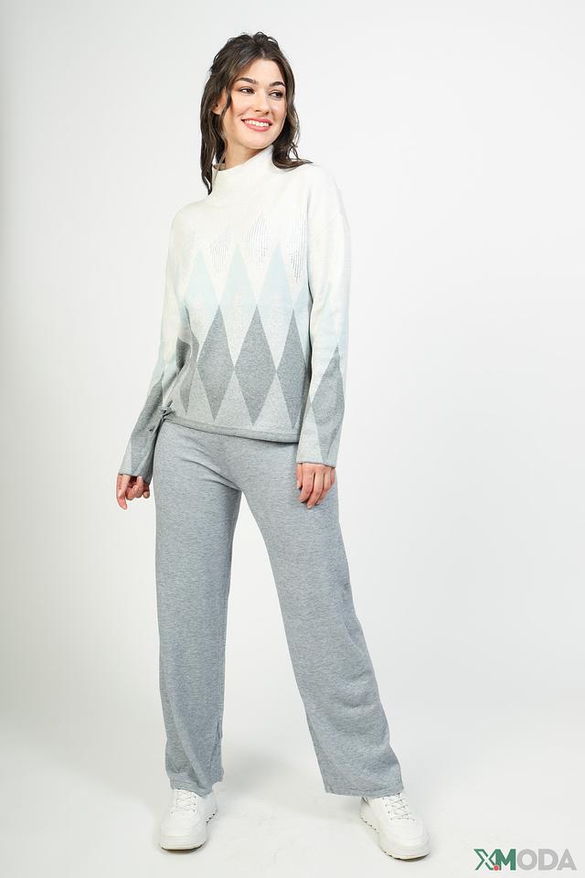 Брюки имеют прямой крой и эластичный пояс, что гарантирует идеальную посадку по фигуре. Ткань состоит из вискозы, полиамида и полиэстера, сочетая в себе мягкость, прочность и простоту в уходе.