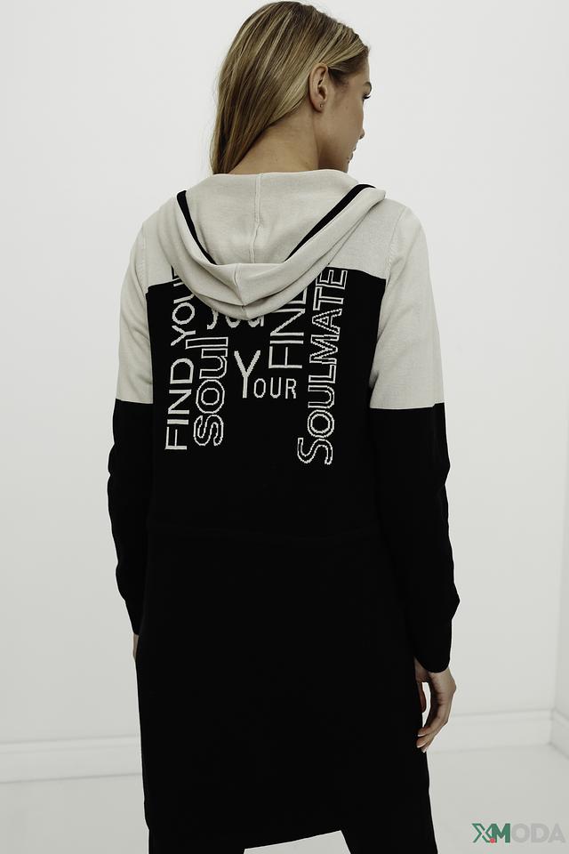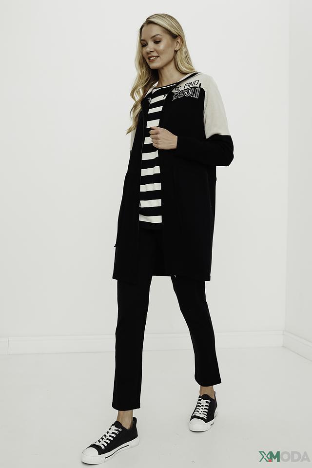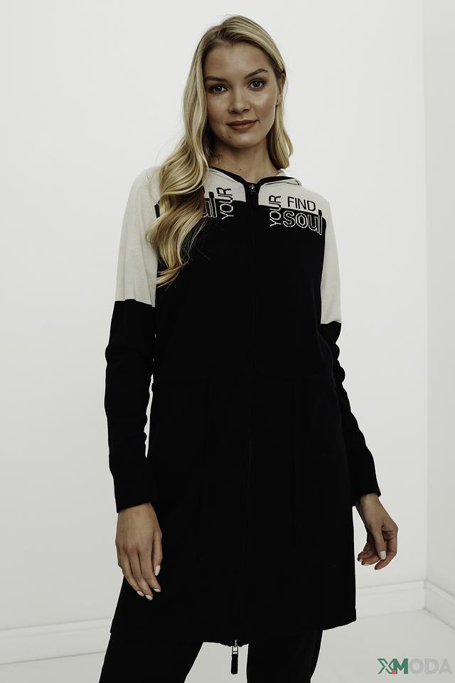 Жакет Betty Barclay чёрно-бежевого цвета с оригинальным принтом и удобным капюшоном. Модель выполнена из мягкой вискозы с добавлением хлопка, обеспечивающей комфорт в носке. Застежка – молния. Состав: вискоза 60%, хлопок 40%
