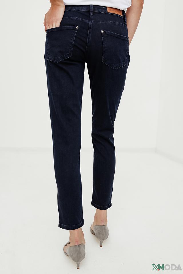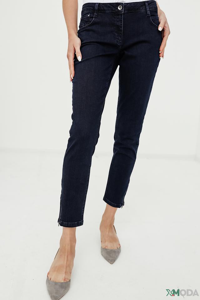 Стильные джинсы Betty Barclay тёмно-синего цвета с зауженным к низу кроем. Модель выполнена из качественного хлопка с добавлением полиэстера и эластана для комфорта и износостойкости. Состав: хлопок 91%, полиэстер 6%, эластан 3%