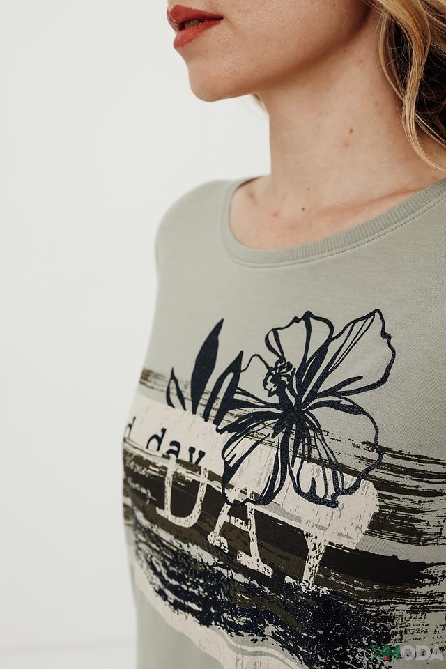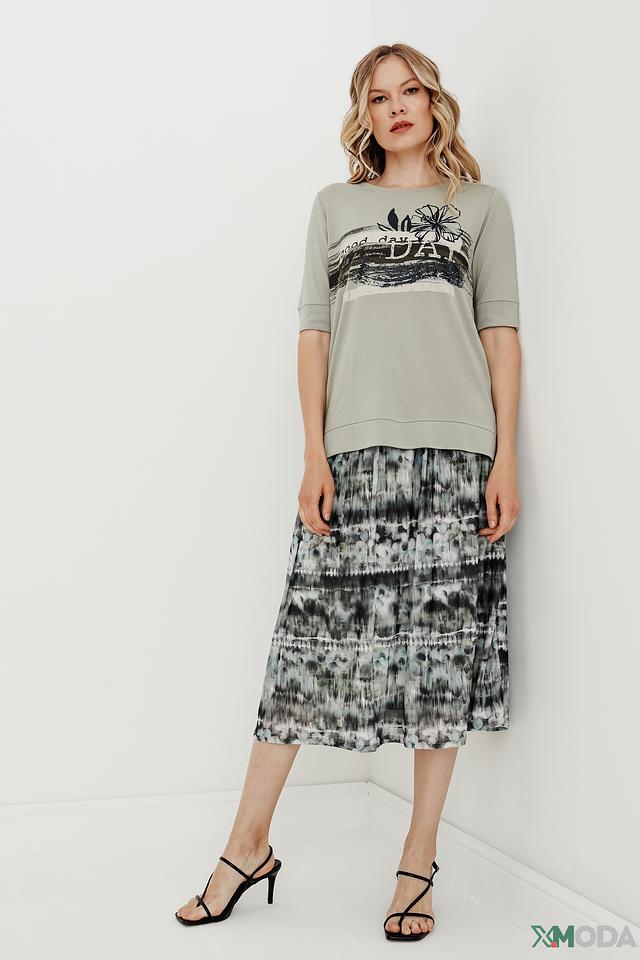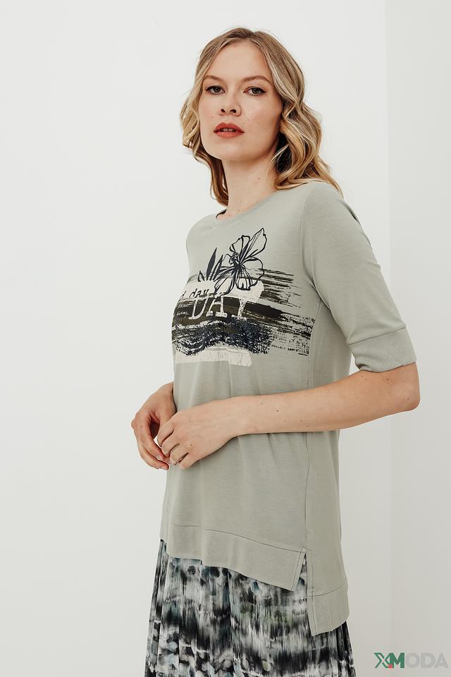 Женская футболка Betty Barclay серого цвета с оригинальным цветочным принтом. Модель выполнена из мягкой вискозы с добавлением эластана, обеспечивающего комфортную посадку. Идеальный выбор для создания стильного повседневного образа. Состав: вискоза 95%, эластан 5%