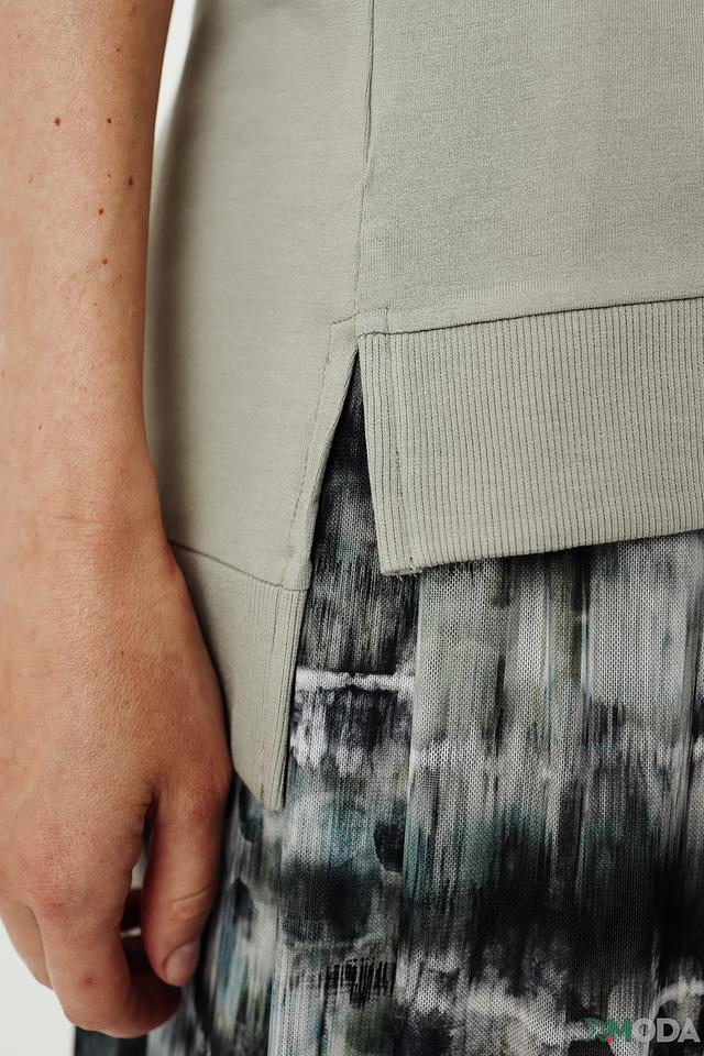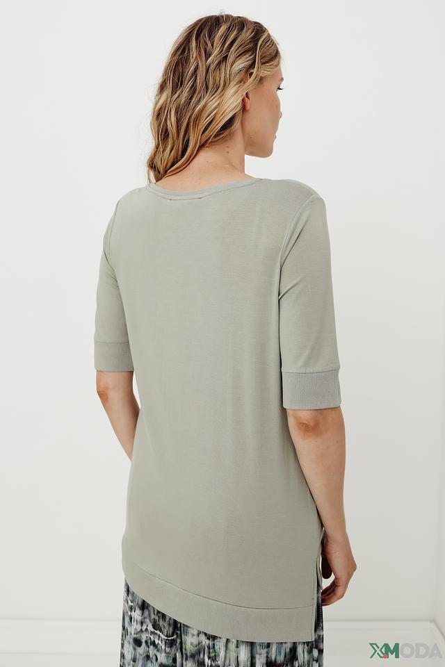 Состав ткани: 95% вискоза, 5% эластан. Футболка легко стирается и быстро сохнет. Она прекрасно сочетается с юбками, брюками и джинсами, позволяя создавать разнообразные образы на каждый день.