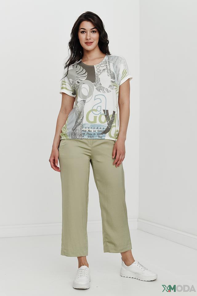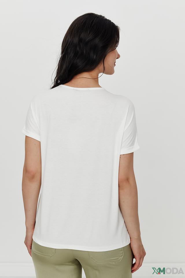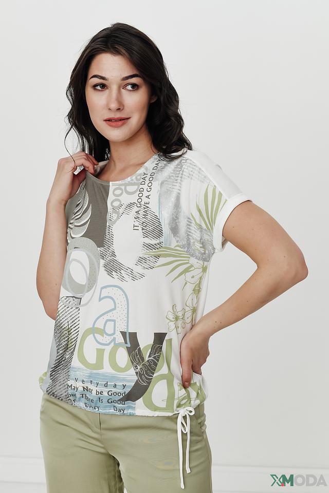 Модель имеет свободный крой, короткие рукава и круглый вырез горловины. Блуза изготовлена из высококачественной вискозы с добавлением эластана, что обеспечивает приятные тактильные ощущения и хорошую посадку по фигуре. Ткань легкая и дышащая, что делает блузу комфортной в носке даже в жаркую погоду.