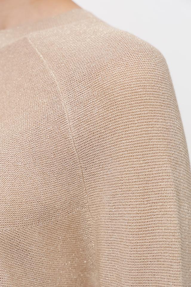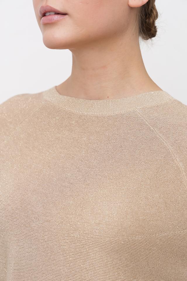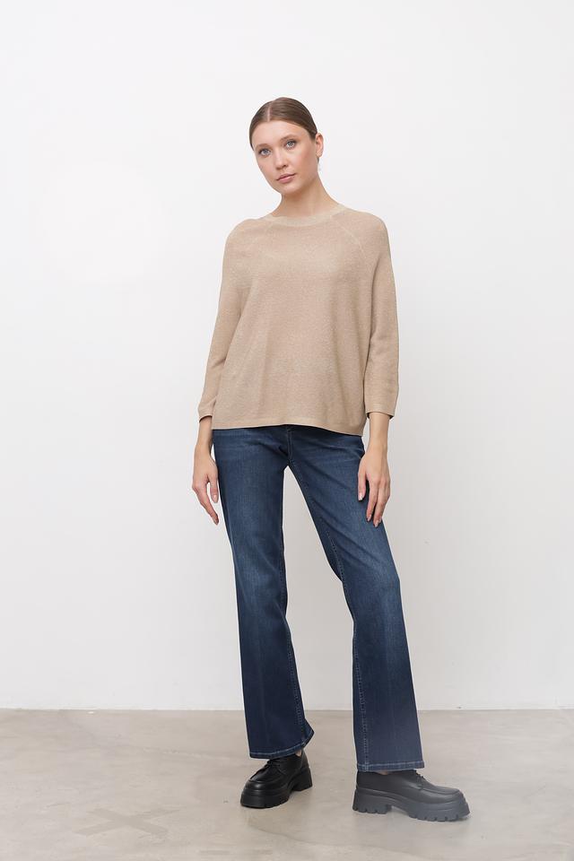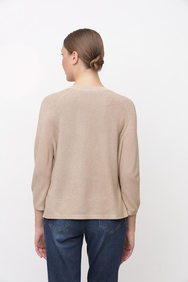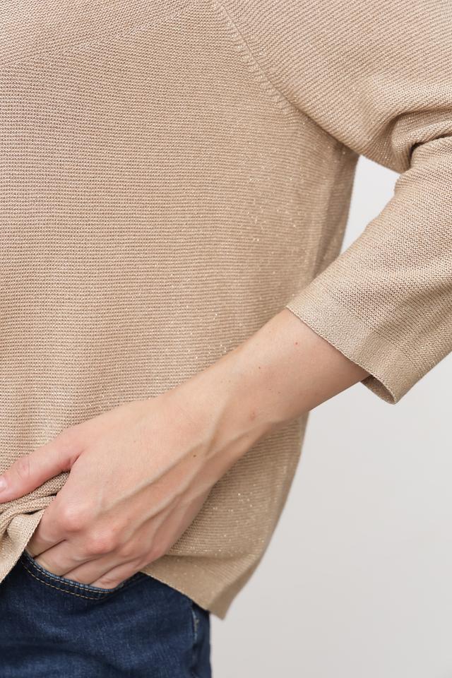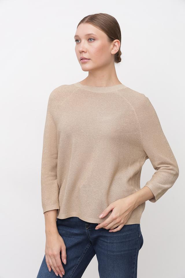 Бежевый пуловер Bianca из мягкого трикотажа с добавлением люрекса. Модель свободного кроя с рукавом 3/4 и округлым вырезом горловины станет отличным дополнением к вашему гардеробу. Состав: полиакрил 52%, хлопок 43%, метализ.нить 5%