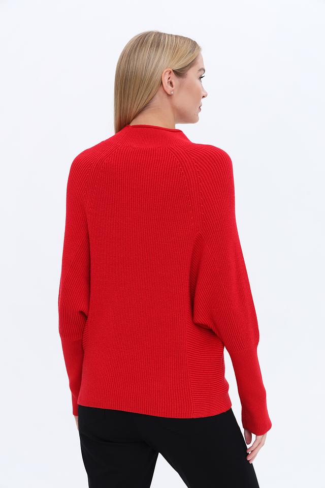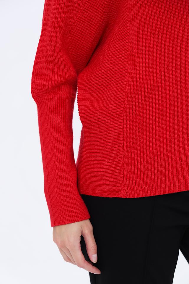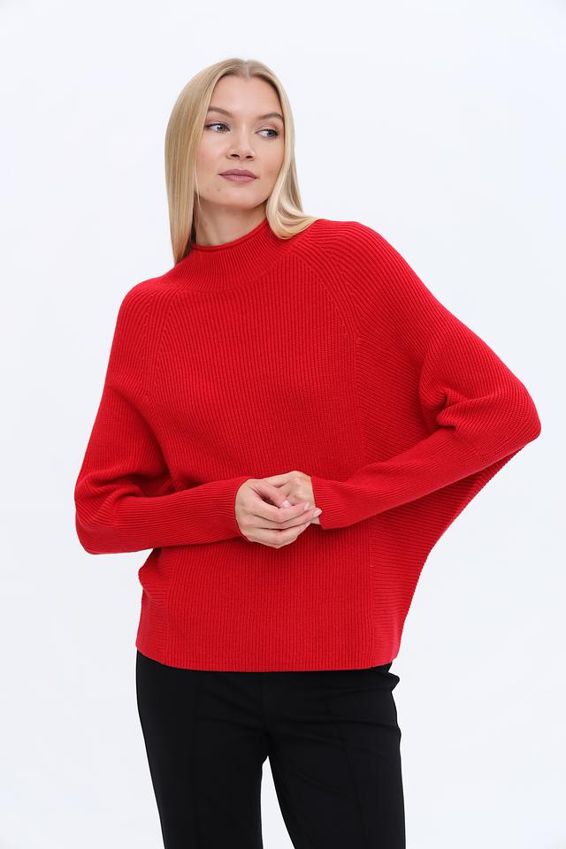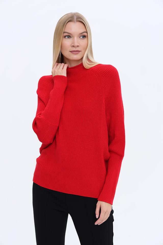 Пуловер имеет прямой крой и высокий горл, что делает его универсальным элементом гардероба. Яркий красный цвет добавит образу акцент и выразительность. Трикотажная структура изделия обеспечивает комфорт при носке и позволяет коже дышать.